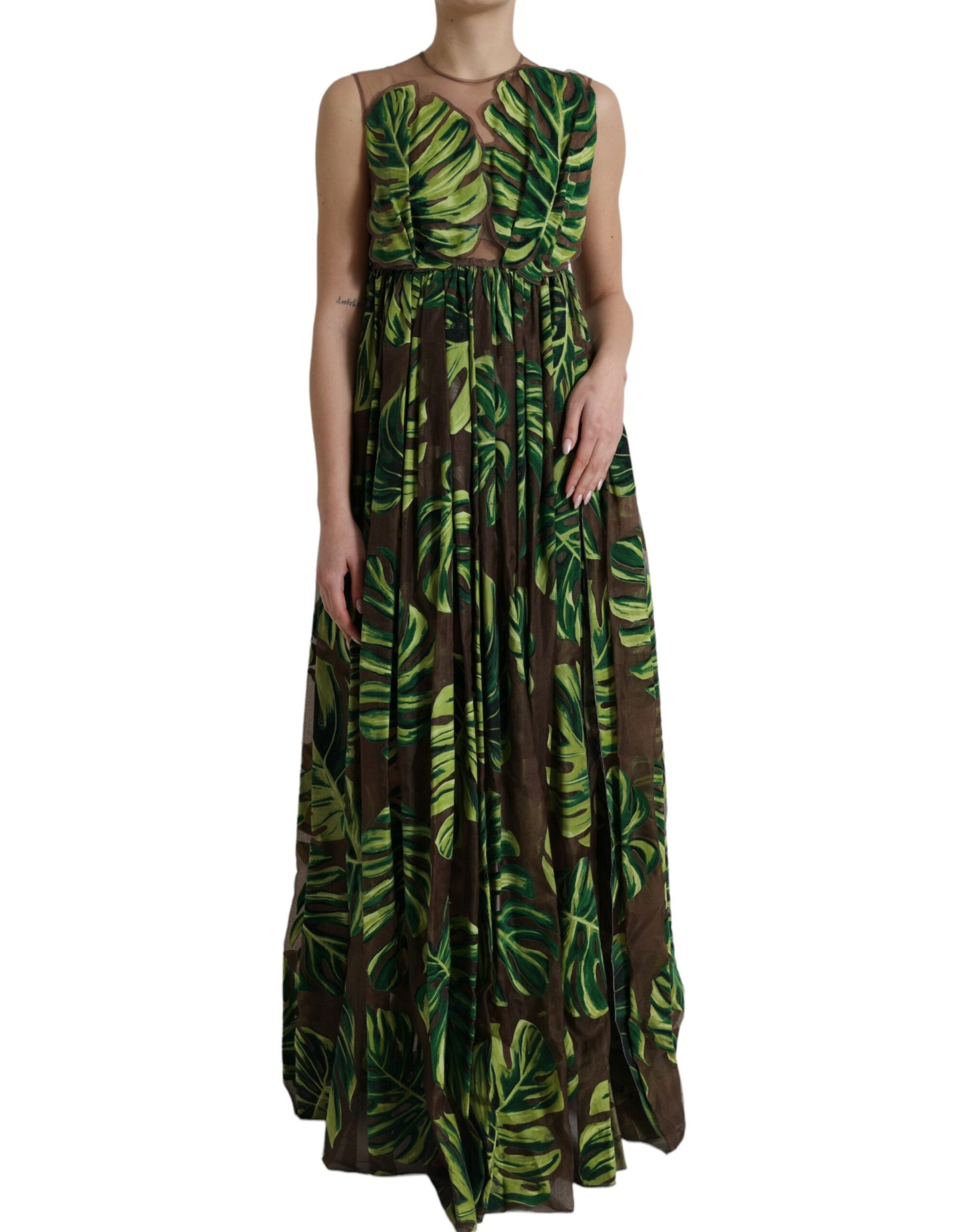 Dolce & Gabbana Green Banana Leaf Sleeveless Long Maxi Women's Dress