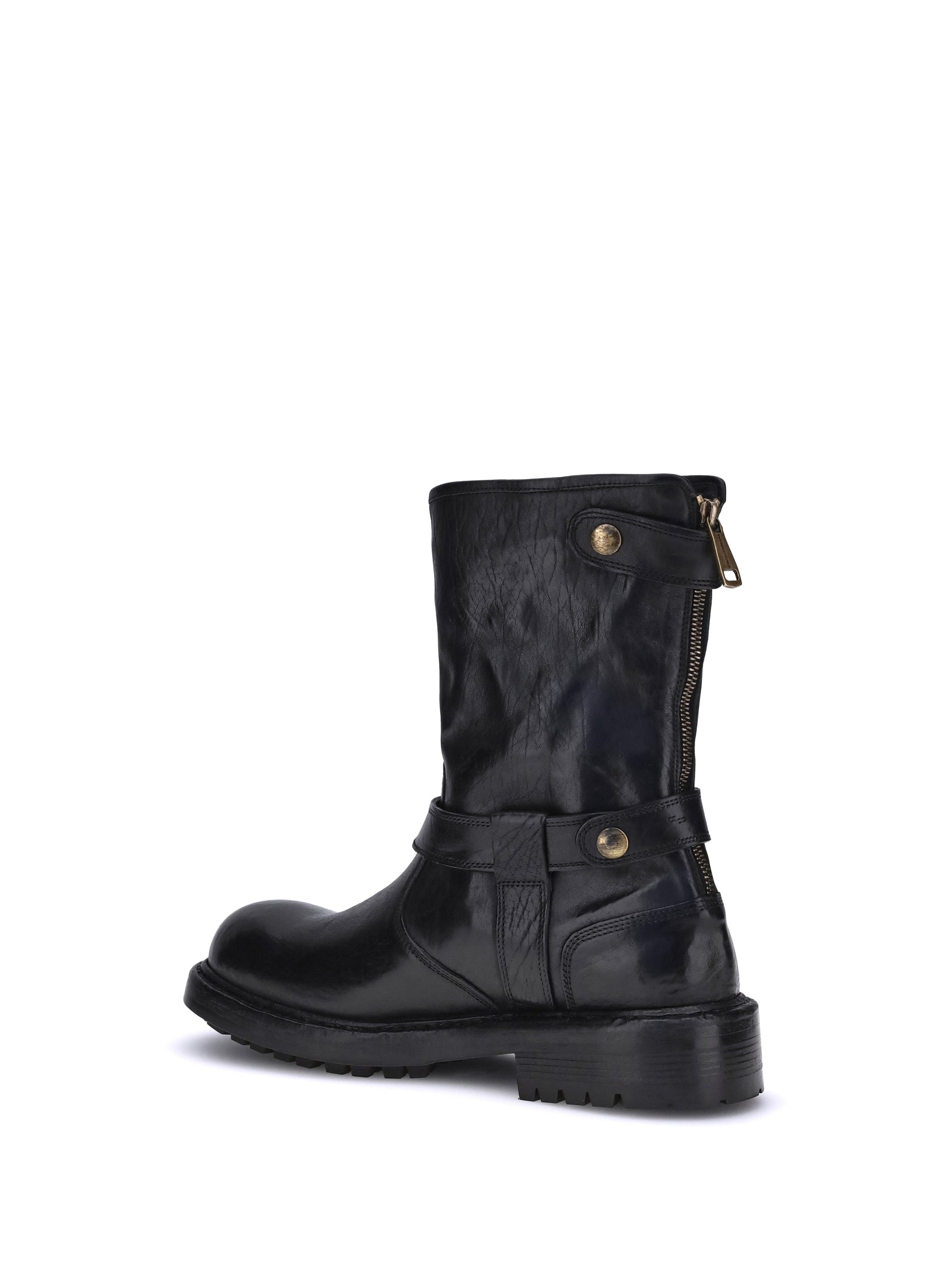 Dolce&Gabbana's Leather Boots feature a bold silhouette with a rounded toe and block heel. The back zipper ensures a comfortable fit, while the two buckles add a gritty and distinctive touch to the design.