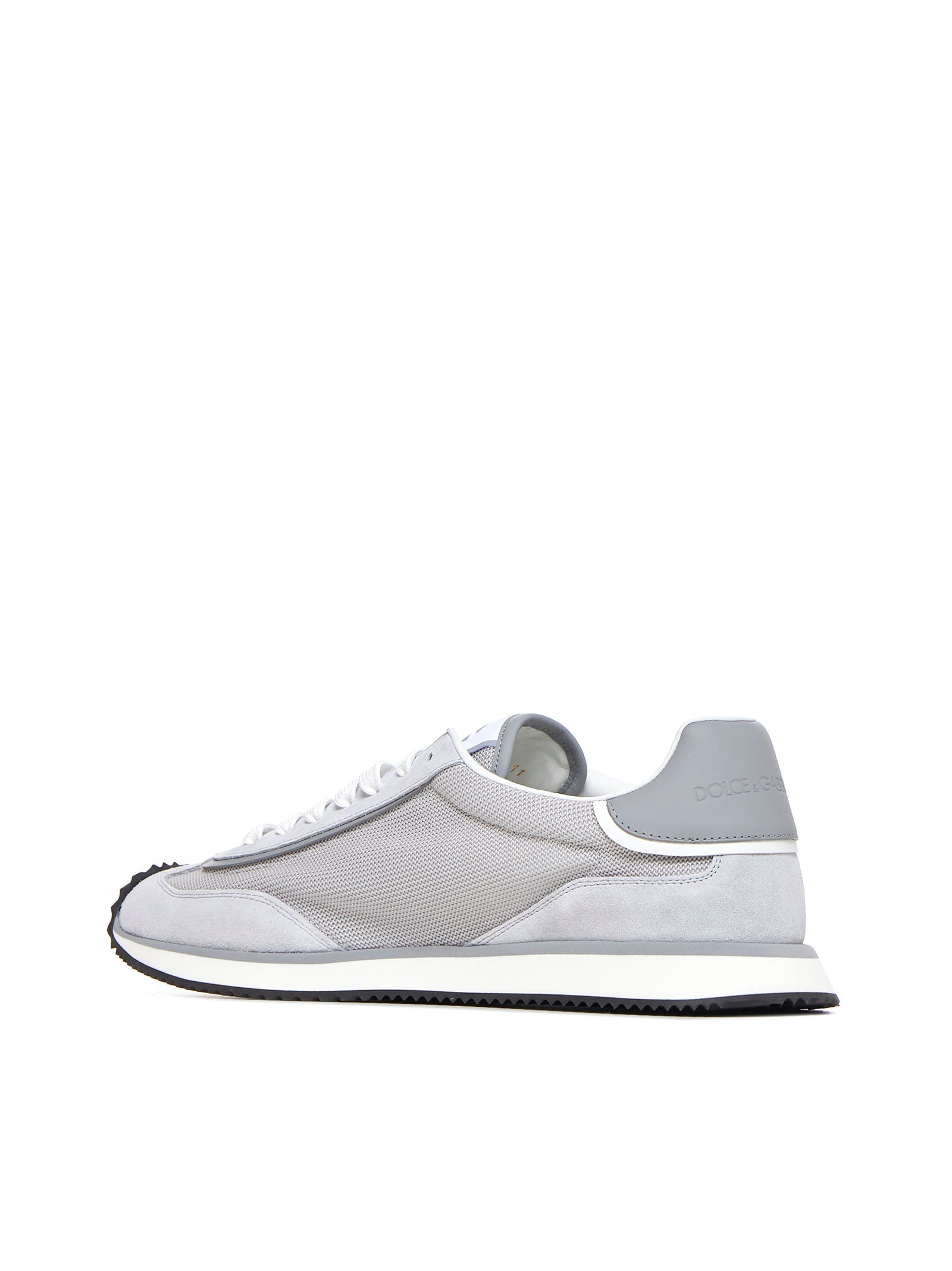 Dolce & Gabbana's Aria low-top sneakers in mesh, suede and leather in shades of white and grey featuring a rounded almond toe, front laces, logo label on the tongue, side DG logo, logo lettering embossed on the heel patch and rubber sole.