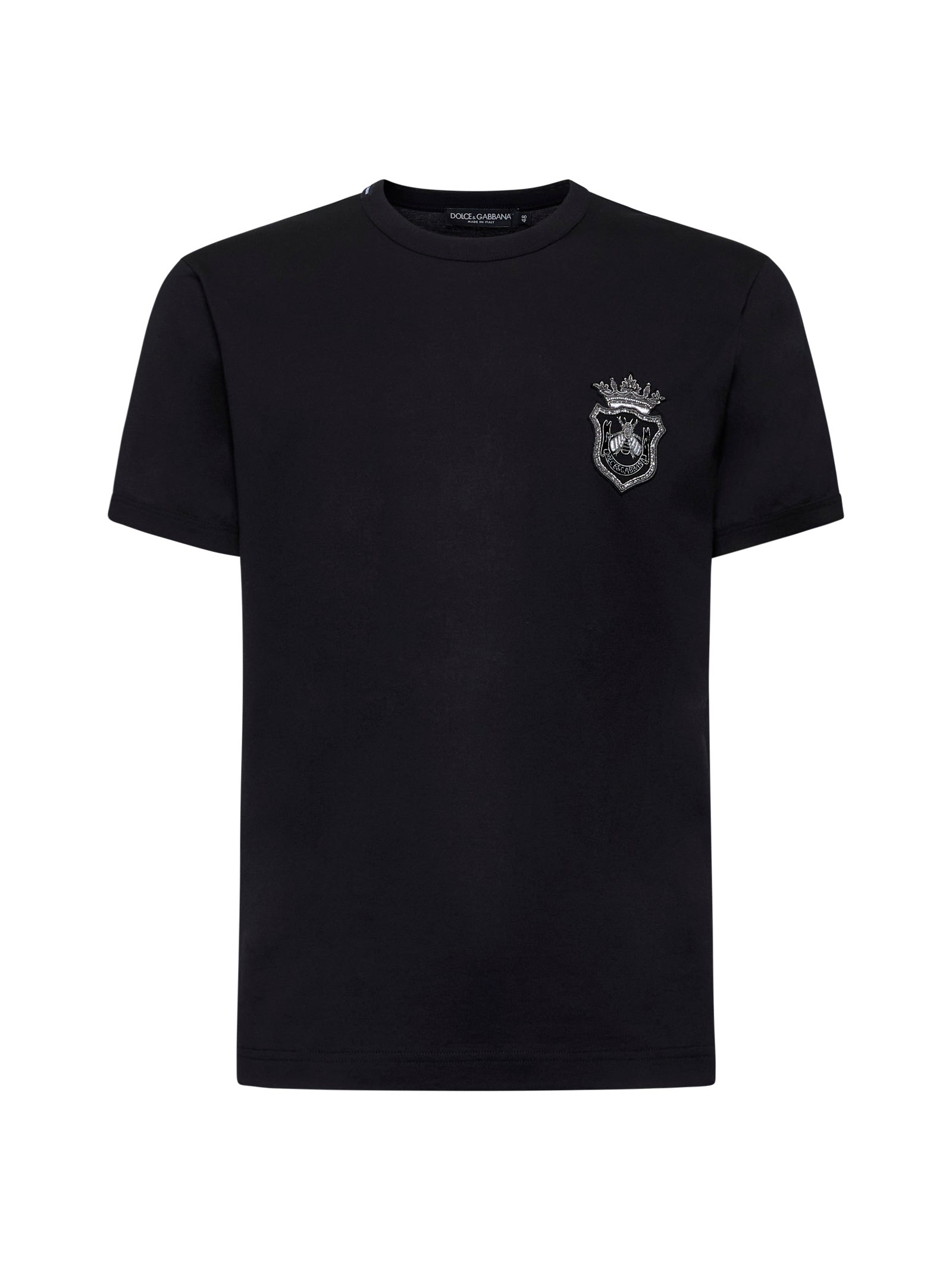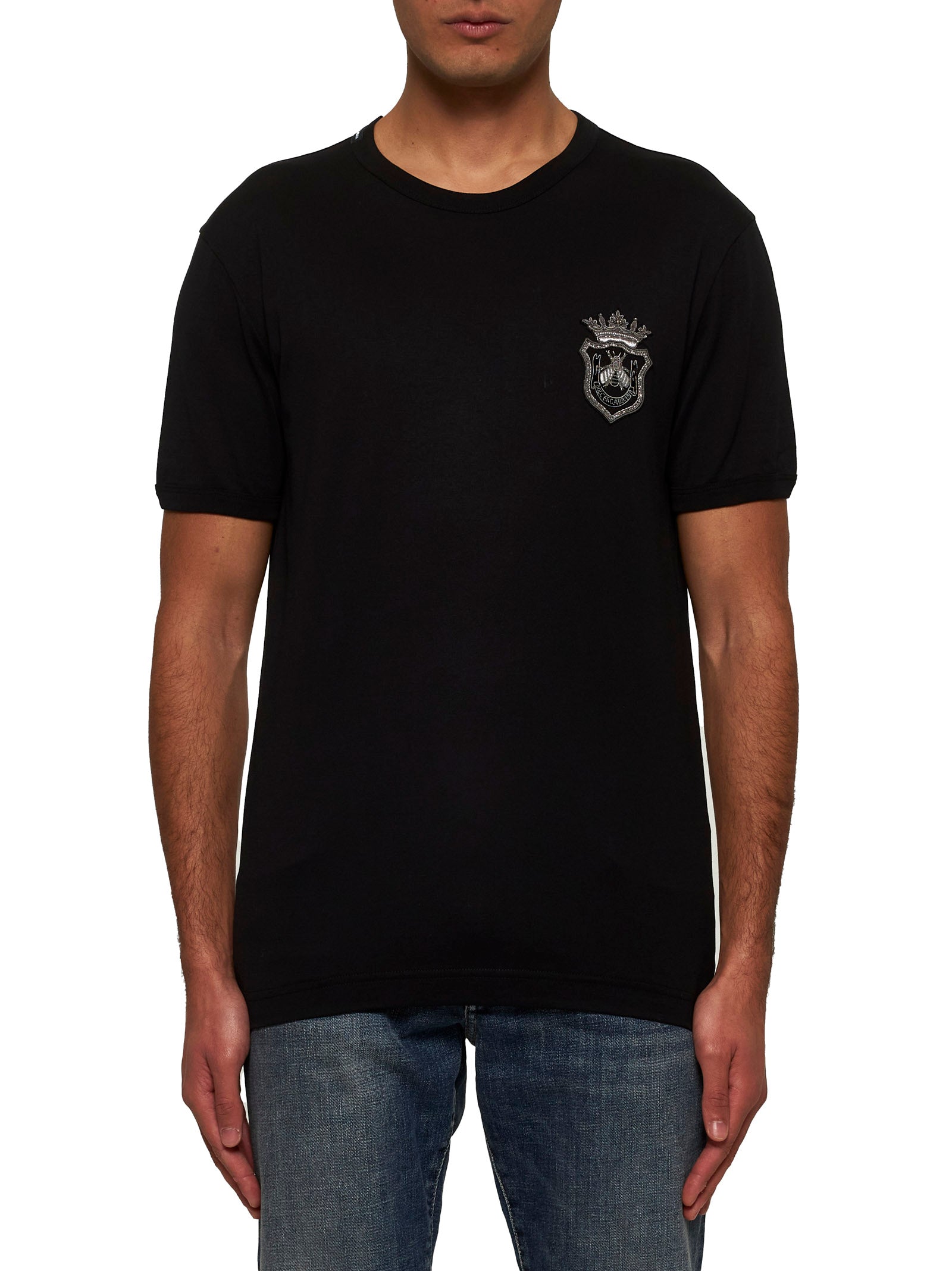 Dolce & Gabbana Men Black Cotton Heraldic Patch T-Shirt