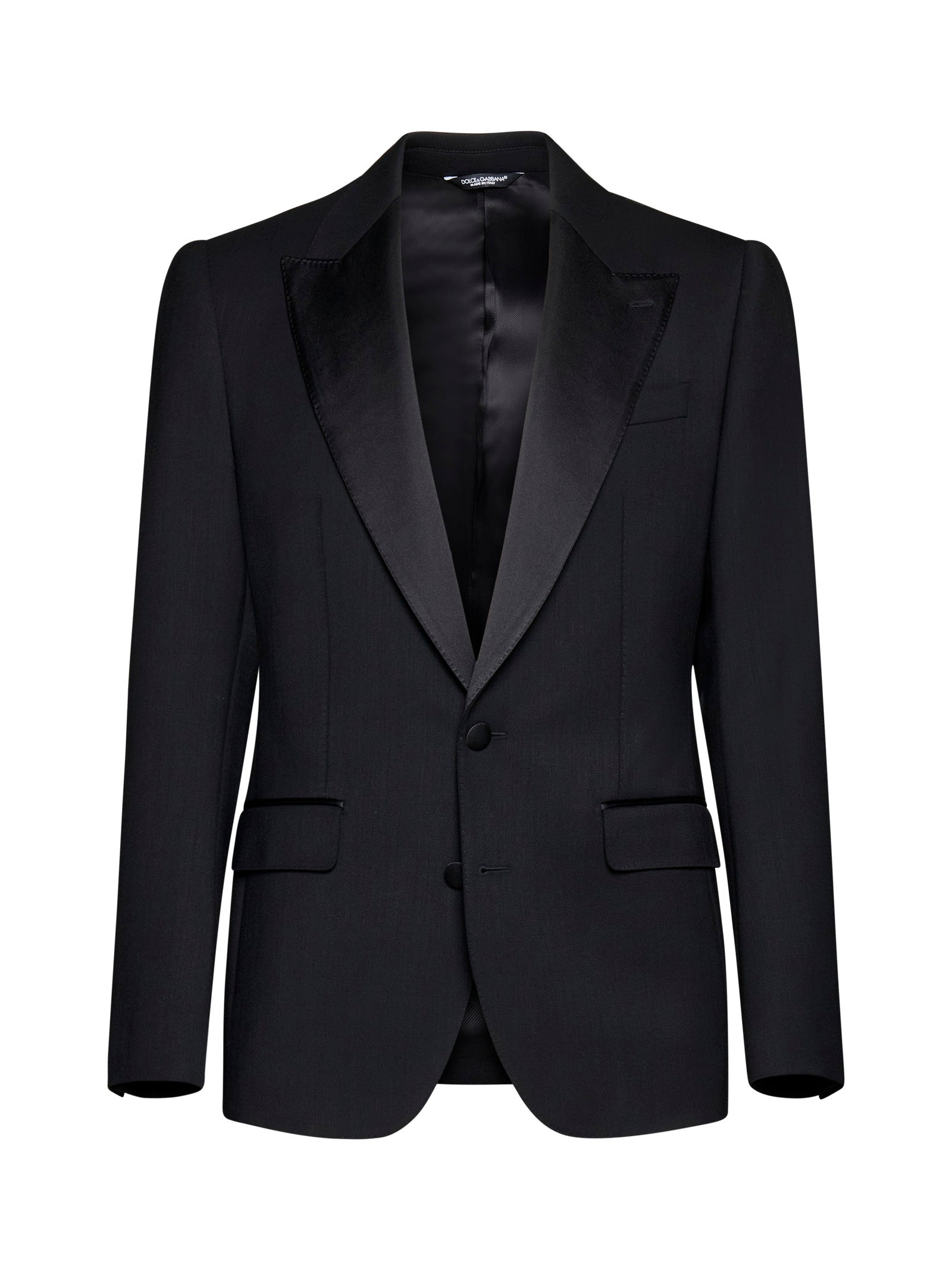Dolce & Gabbana Men Black Stretch Wool Sicilia Tuxedo Blazer
