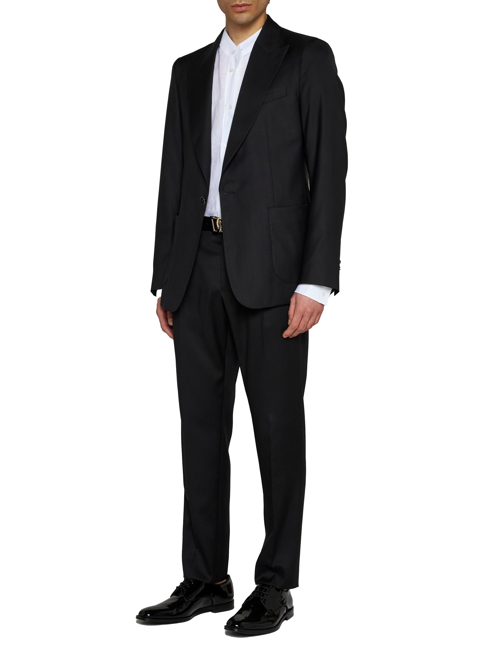 •Single-breasted one-button placket •Peak lapel •Long sleeves, four-button cuffs •Front patch pockets, breast pocket, inner pockets •Central slit at bottom back •Lined •Miami fit •Black color •65% Wool, 35% Silk •Made in Italy