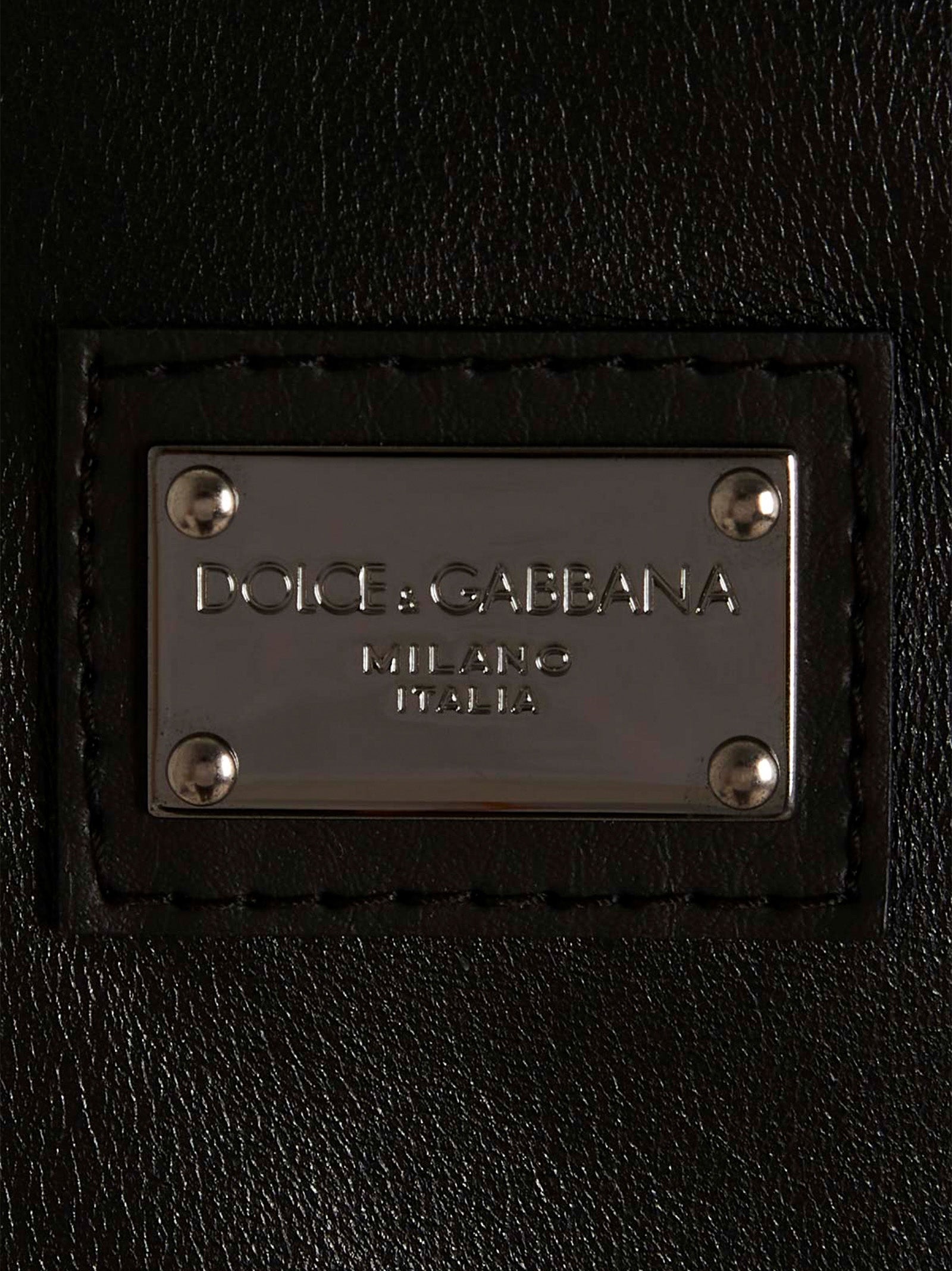Leather 'DG Essential' bomber jacket with knit collar, zipper closure, pockets, long sleeve with elastic cuff, elastic hem, front logo plaque.