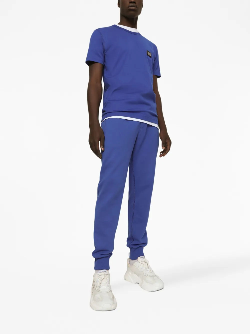 DG Essentials crew neck t-shirt Italian brand Dolce & Gabbana enriches this short-sleeved T-shirt with a logo plaque on the chest. Crafted in a vibrant blue hue, this detail adds a branded touch to the laid-back look. Made in Italy Highlights blue cotton silver-coloured logo plaque crew neck short sleeves straight hem Composition 100% cotton Washing instructions Read the manufacturer`s guidelines Brand style ID: G8PT1TG7F2I Cotton | 100%CO