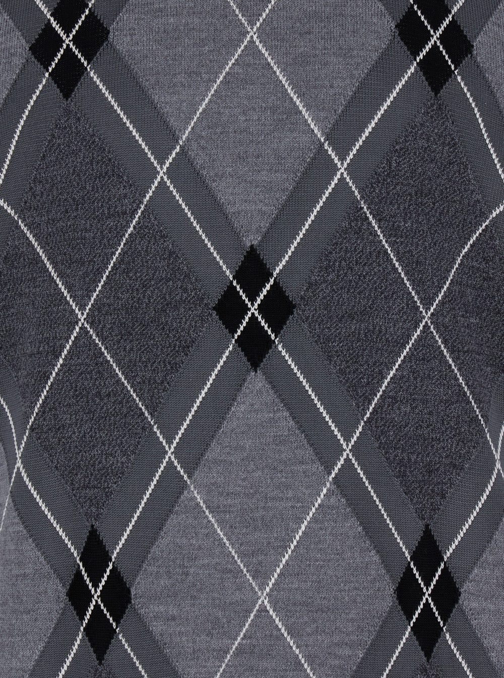 Sweater Gray Crewneck Long sleeves Logo on the front All-over diamond pattern Ribbed hem and cuffs Wool blend Regular fit