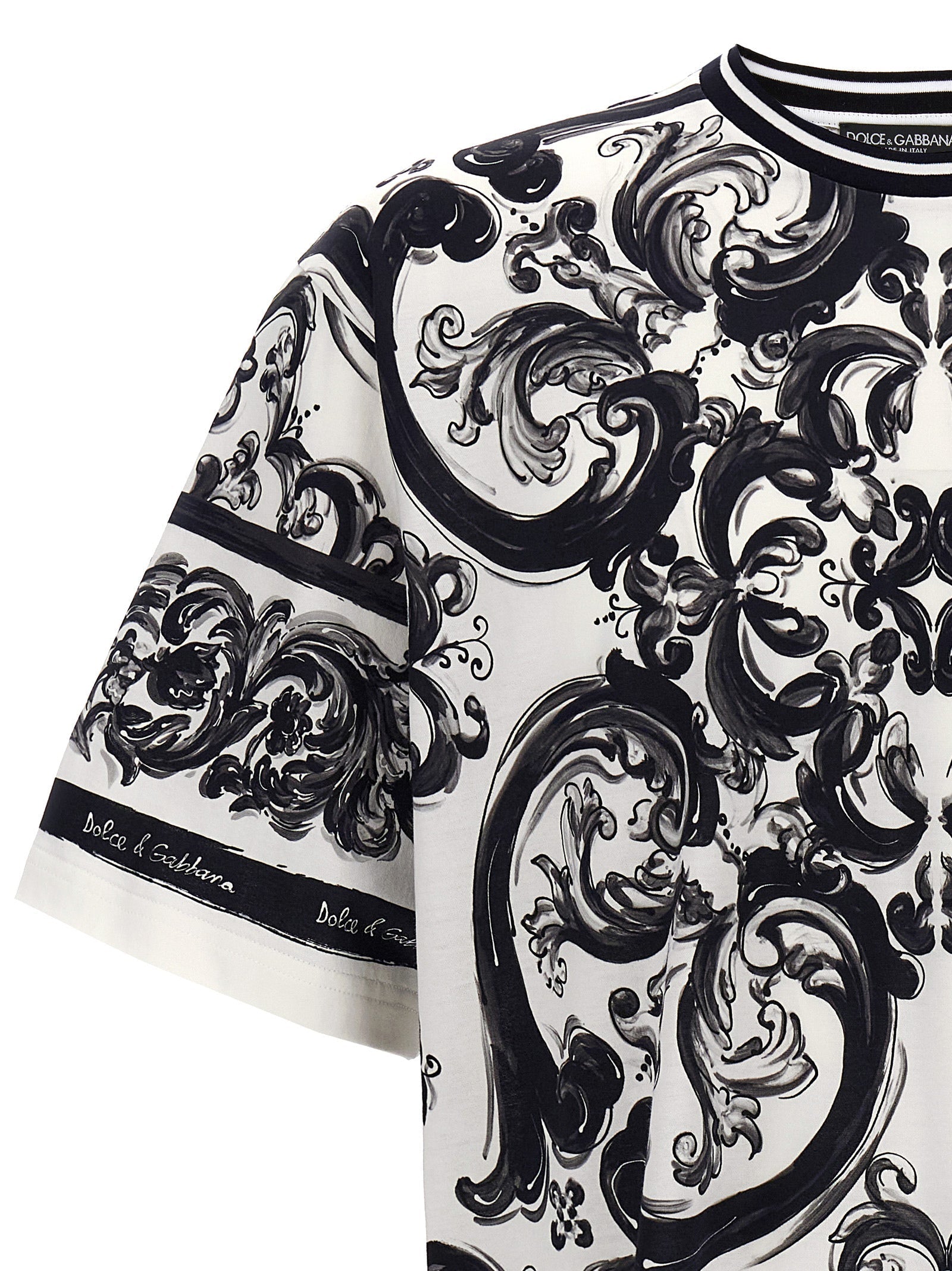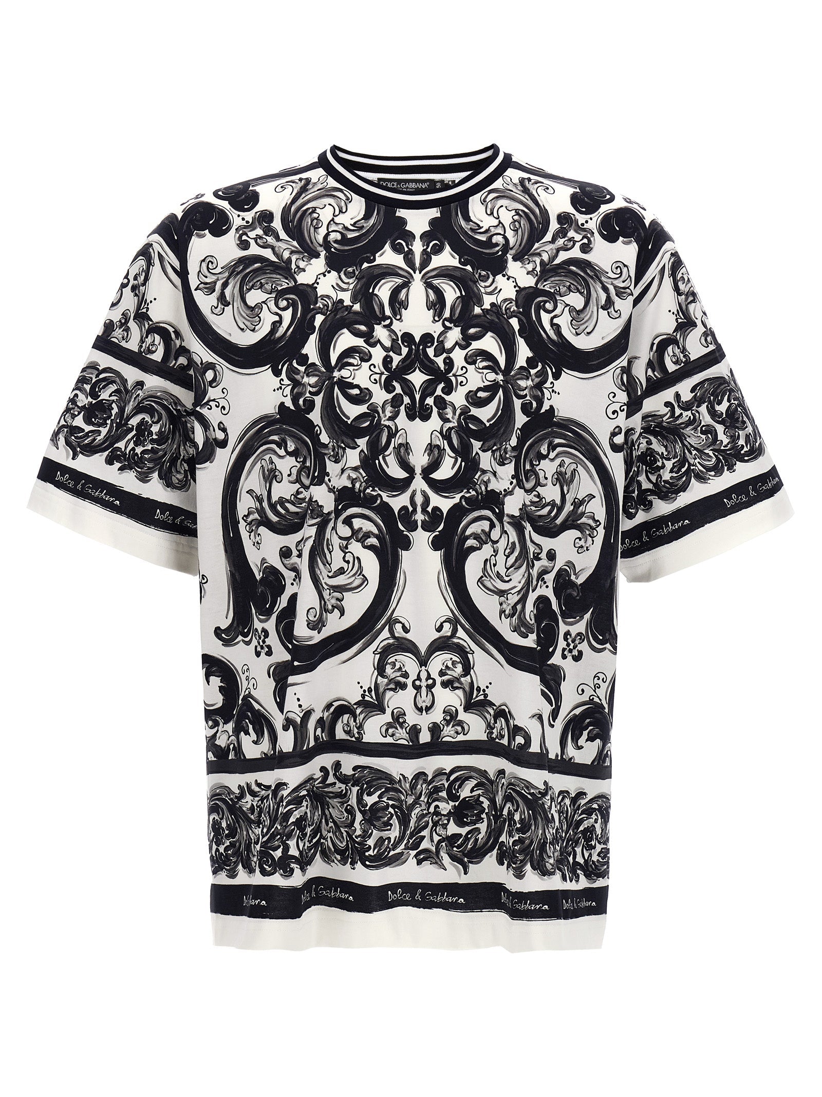Maiolica' print cotton T-shirt with crew neck and short sleeves. The differences in print placement you might find on this product is a characteristic of Dolce&Gabbana's Handmade products. A peculiarity that makes each garment or accessory unique and exclusive.