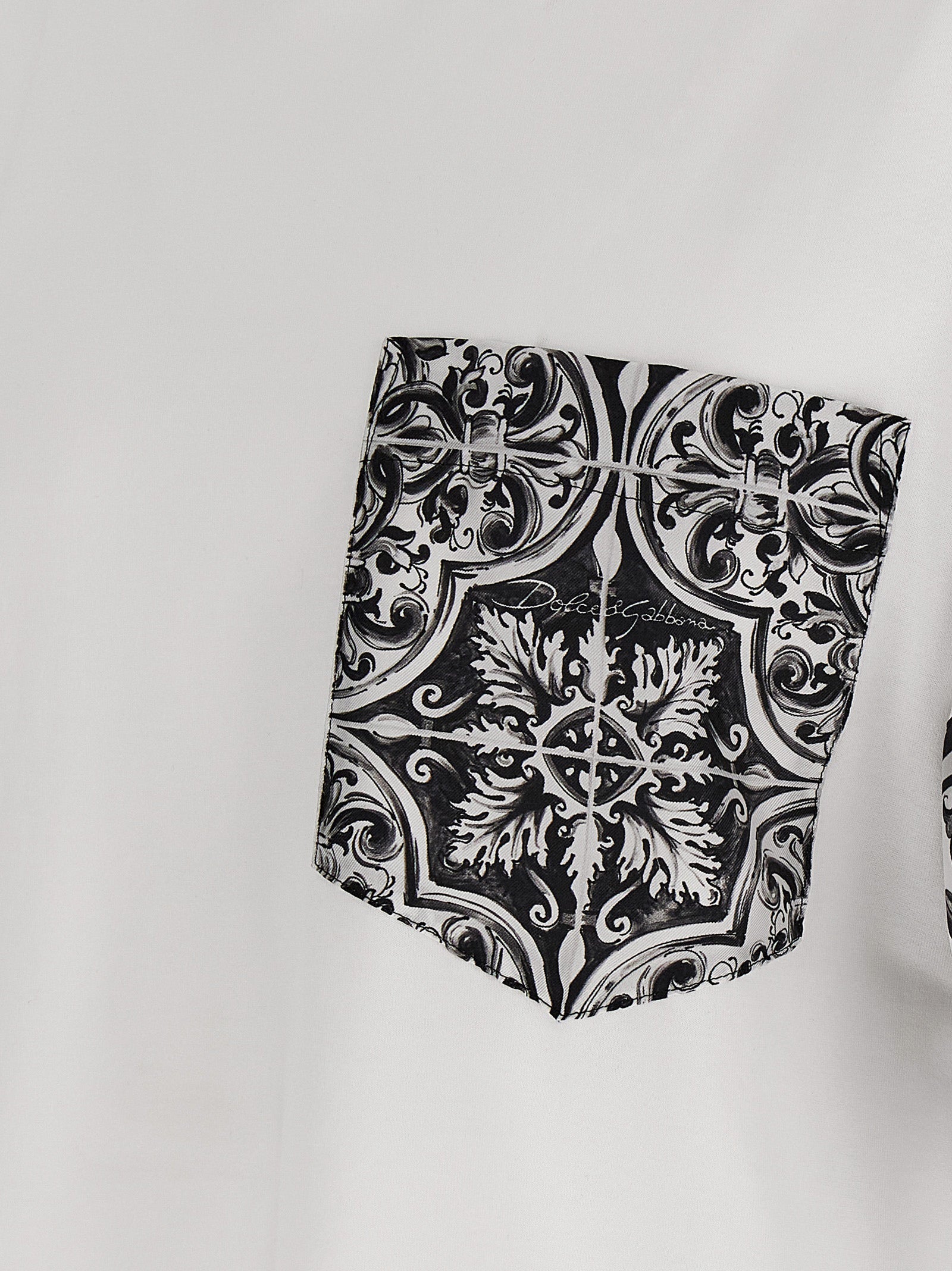 Cotton jersey crew neck T-shirt with silk 'Maiolica' print details, short sleeves. The differences in print placement you might find on this product is a characteristic of Dolce&Gabbana's Handmade products. A peculiarity that makes each garment or accessory unique and exclusive.