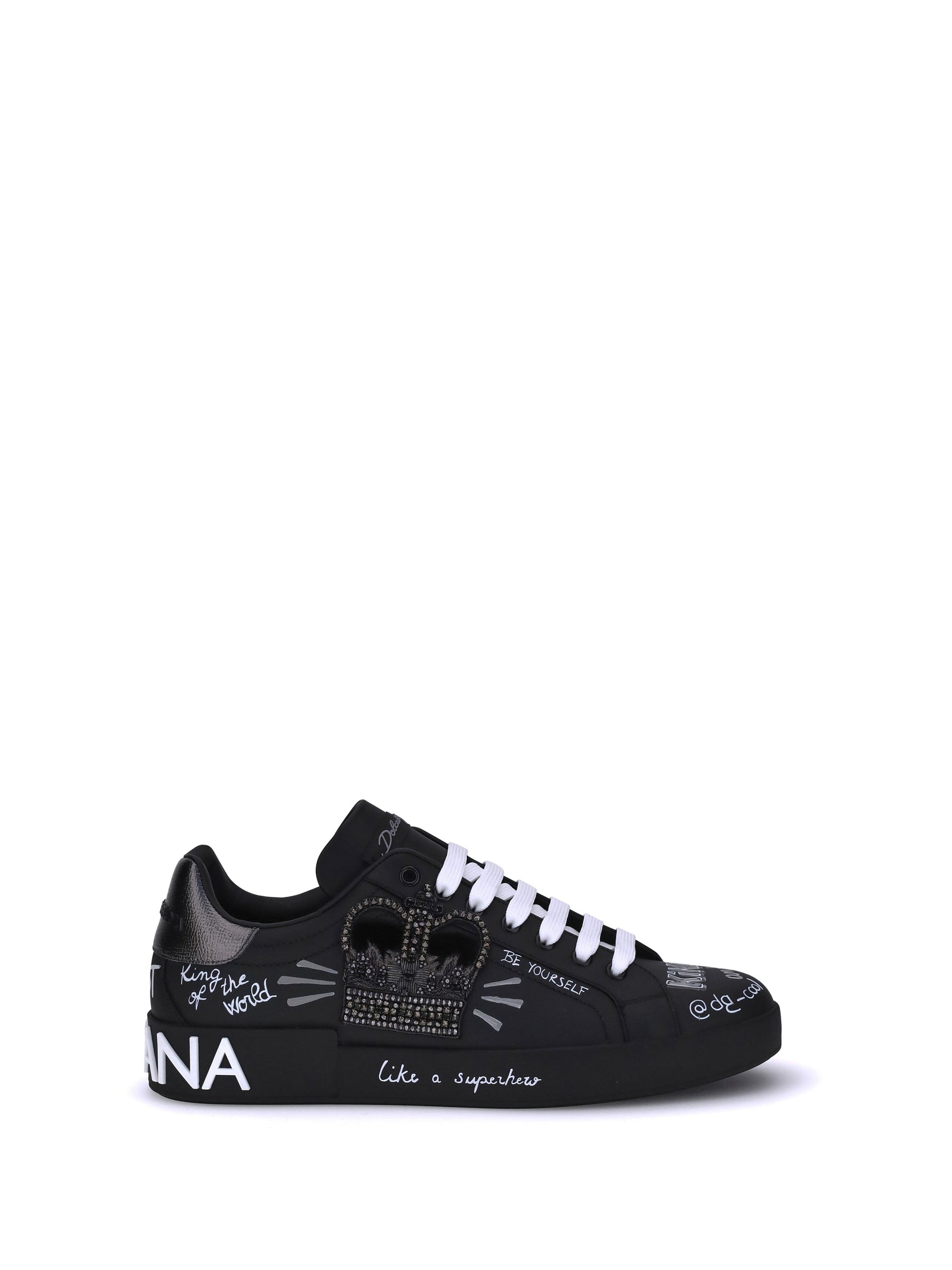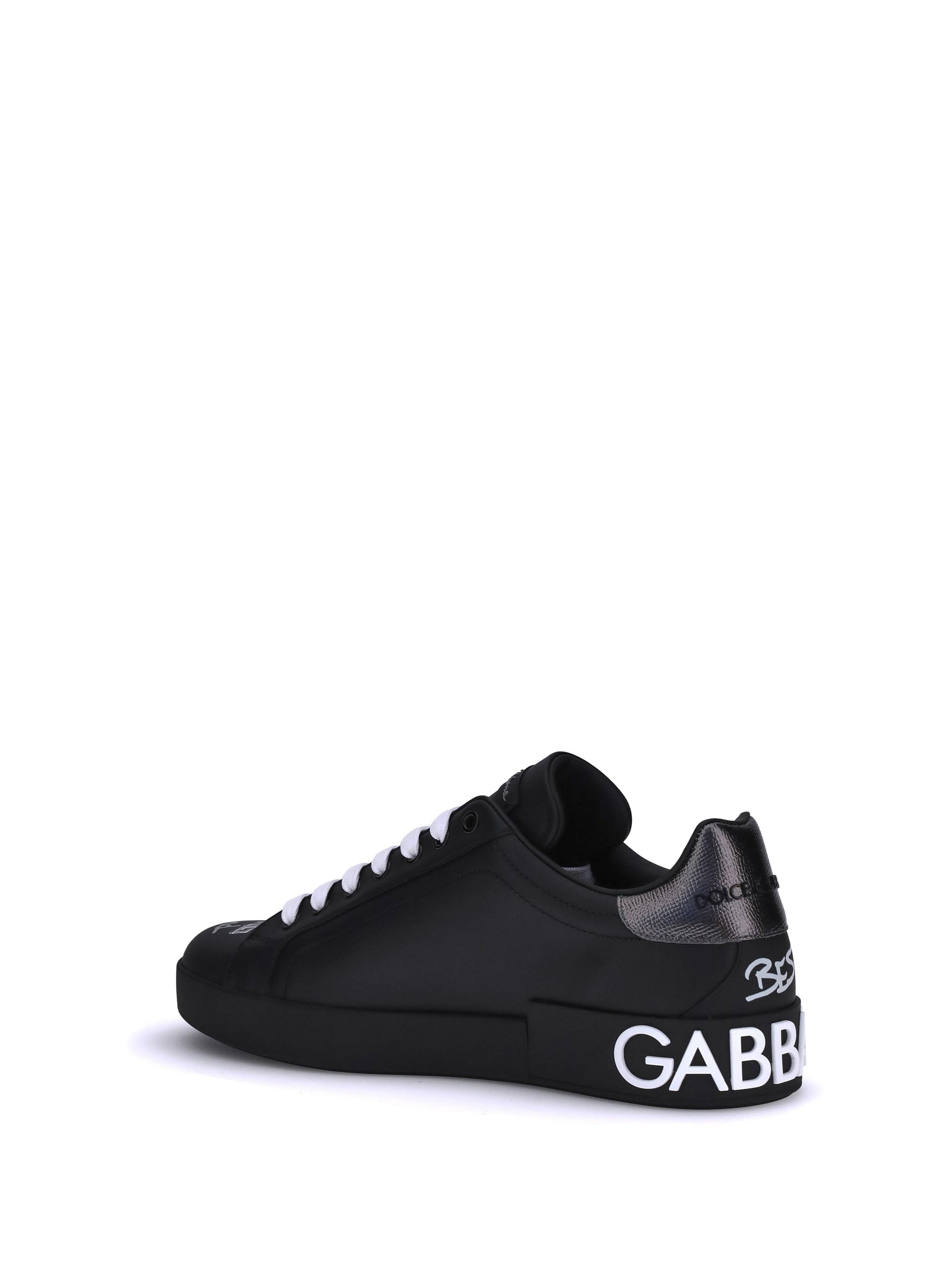 The Dolce&Gabbana Portofino Sneakers, with their essential lines, are made of soft nappa calfskin. Iconic and bold, they stand out for the logo spoiler on the heel, the lace-up closure and the graffiti-style writing that adds an urban touch to the clean design.