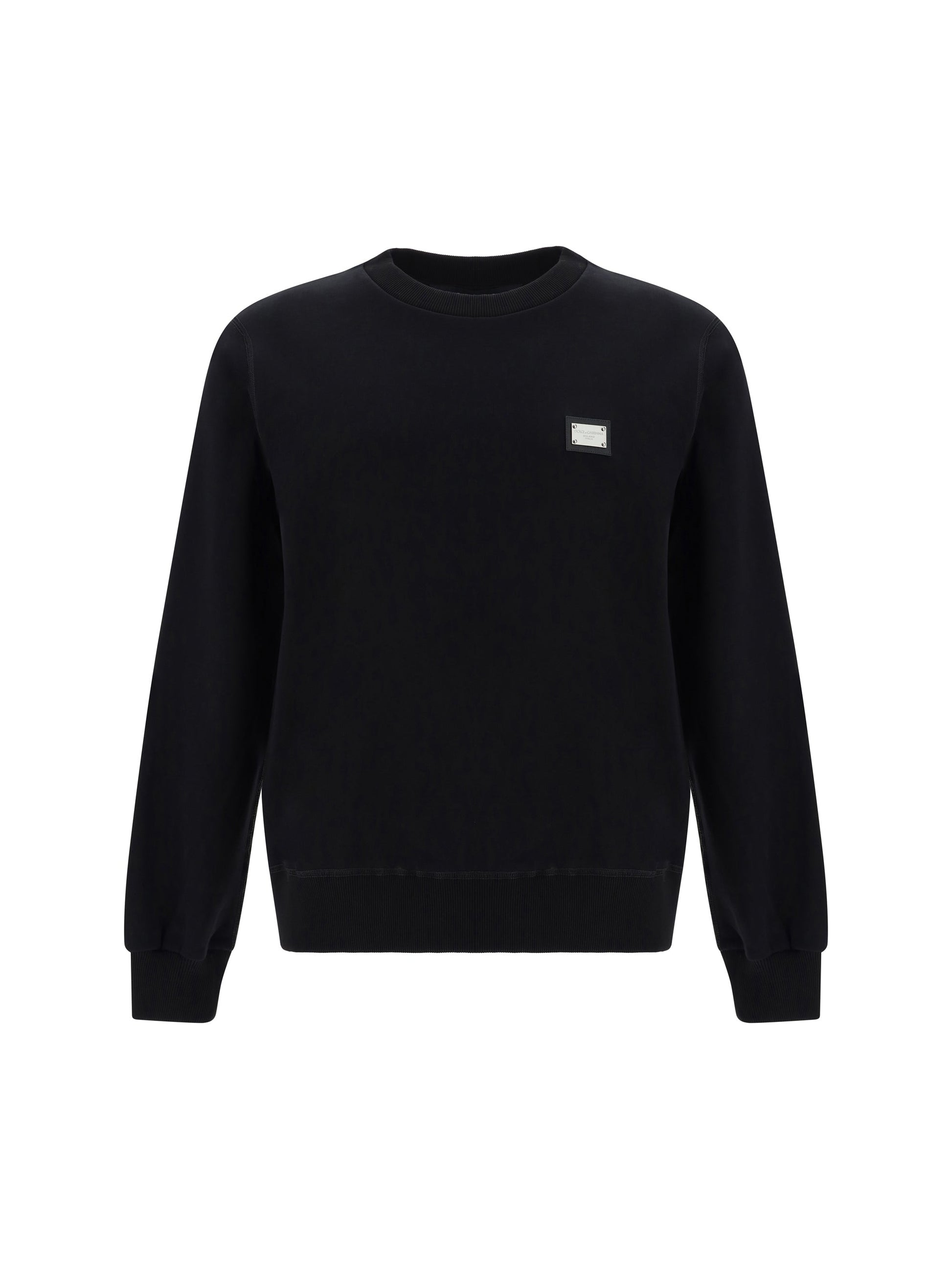 Cotton Sweatshirt by Dolce&Gabbana, ribbed crew neck, ribbed cuffs, ribbed hem, metal hardware with iconic brand D&G monogram engraved and applied at back, monochrome design, regular fit.