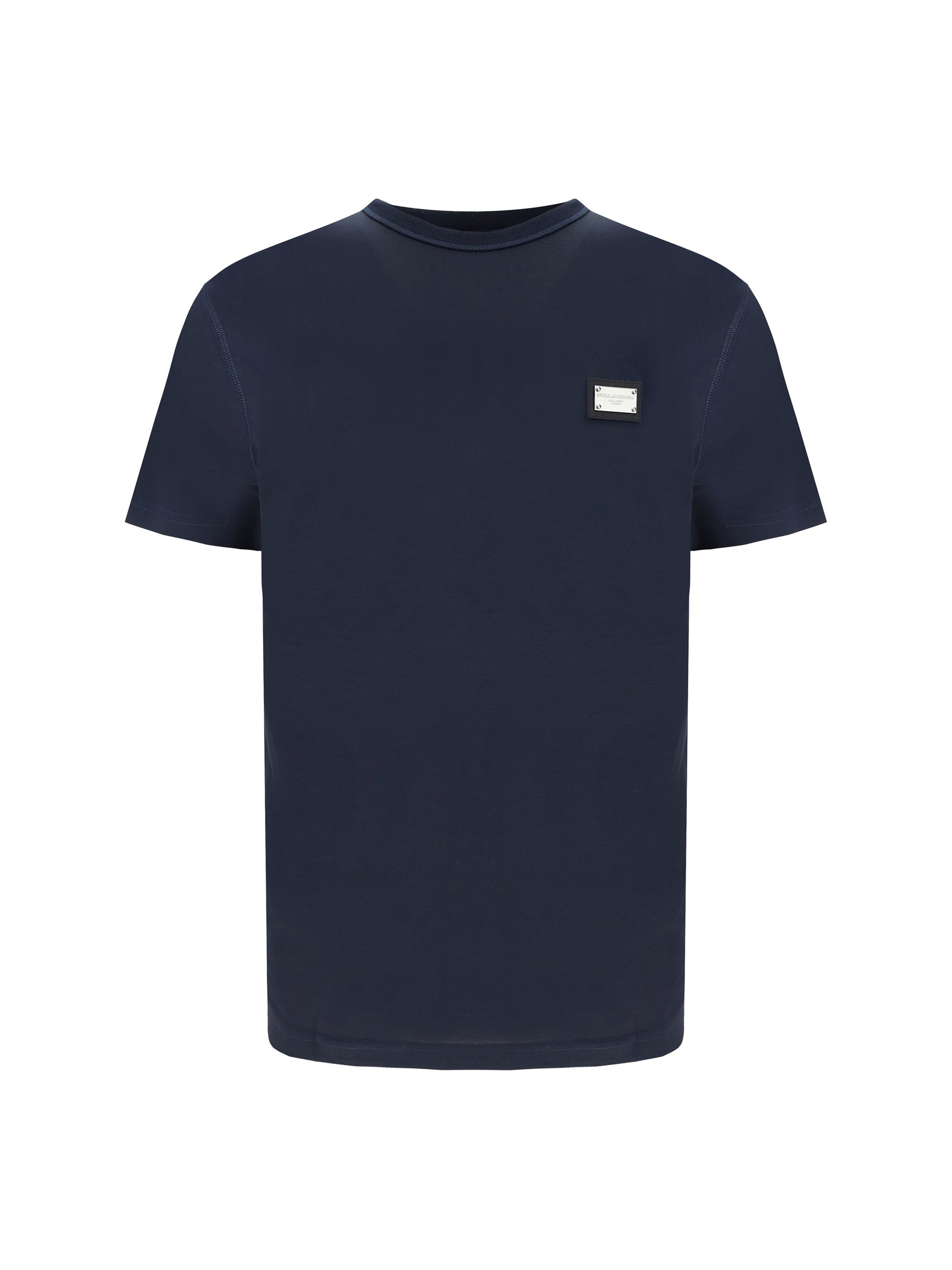 Cotton T-Shirt by Dolce&Gabbana, ribbed crew neck, metal plaque with the brand's iconic D&G monogram engraved and applied on the back, oversize fit.