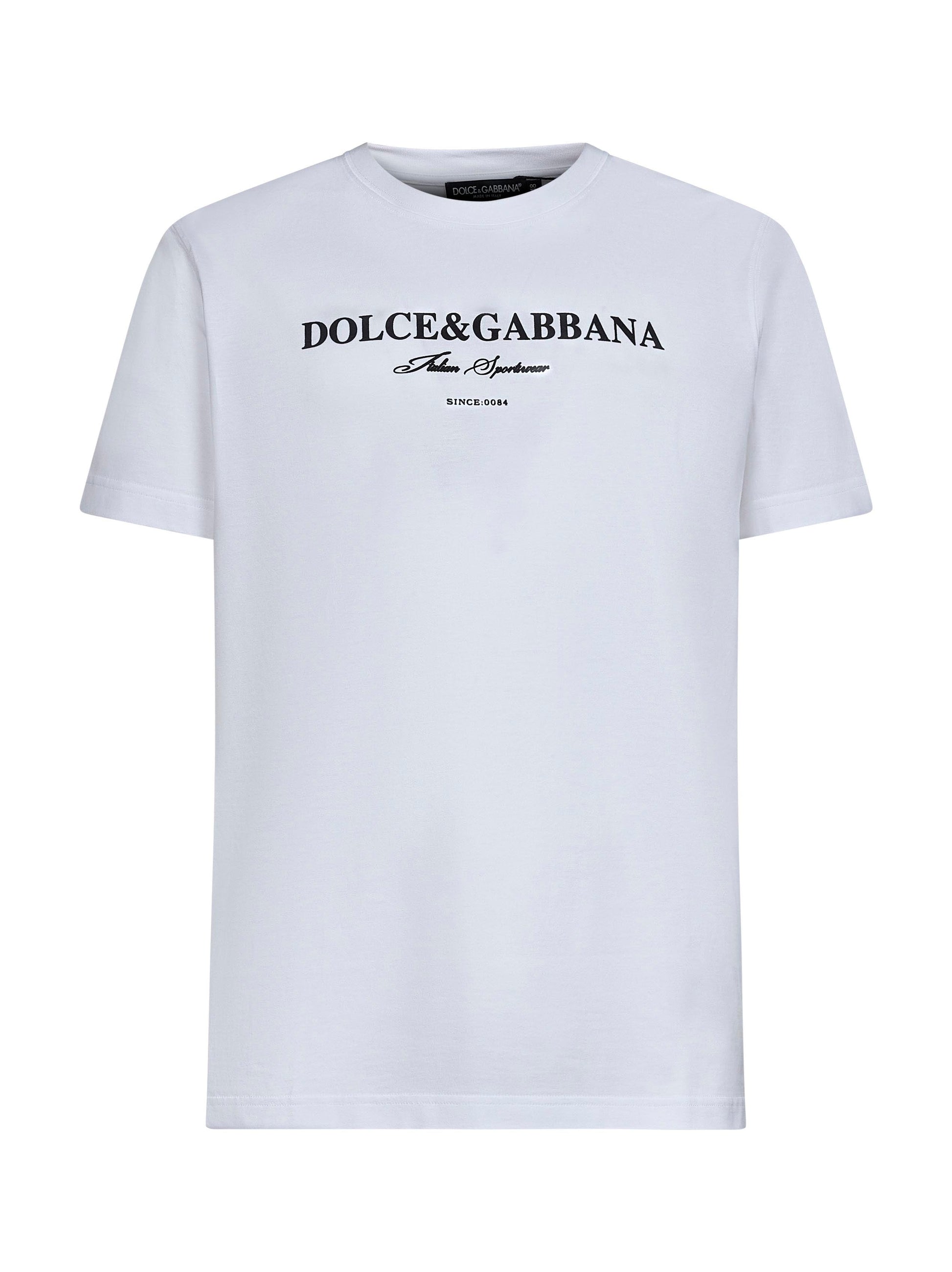 Dolce & Gabbana Men White Cotton Flock Print T-Shirt