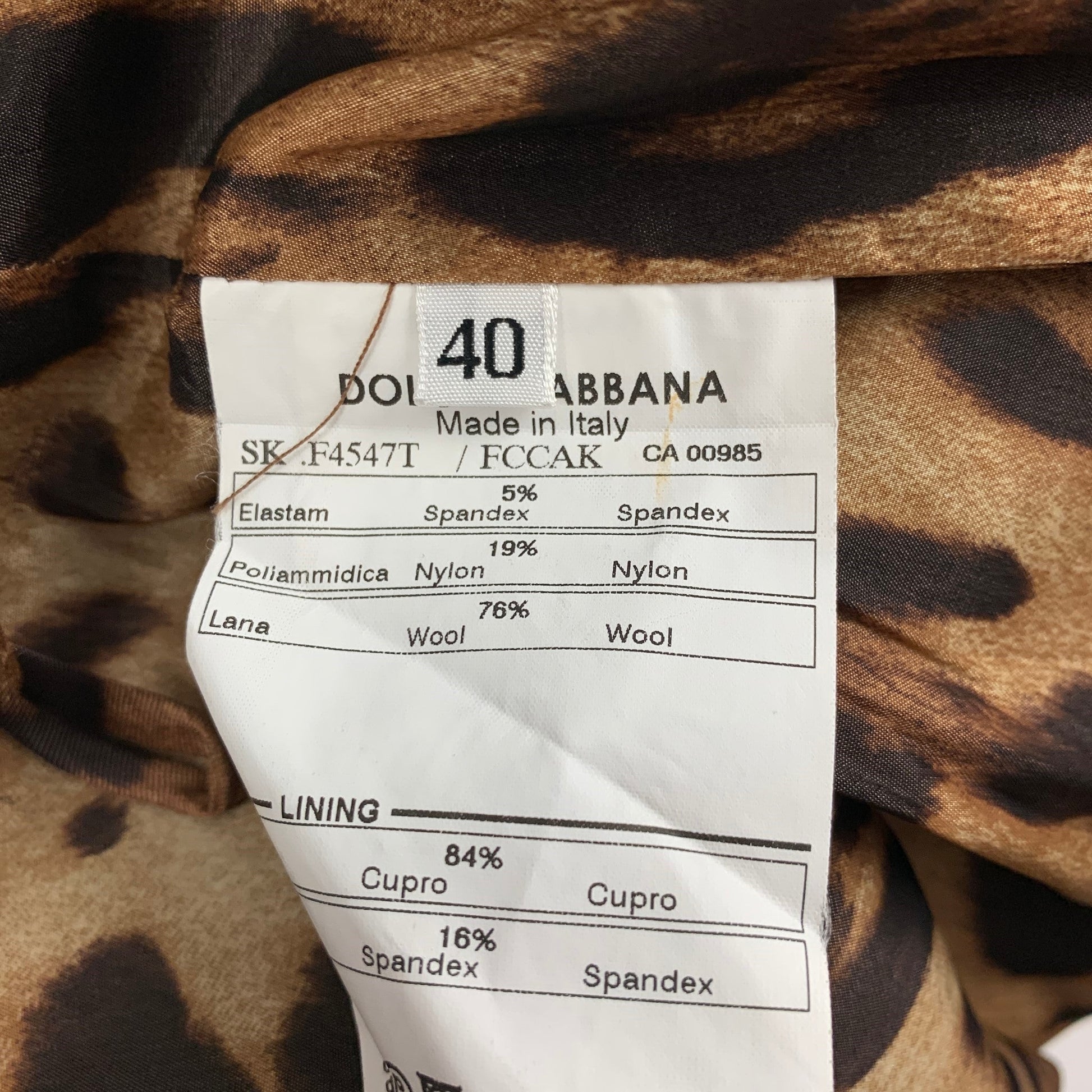 DOLCE & GABBANA skirt comes in a grey herringbone wool blend with a animal print interior featuring a tulip style, snap button detail, and a back zipper closure. Made in Italy.