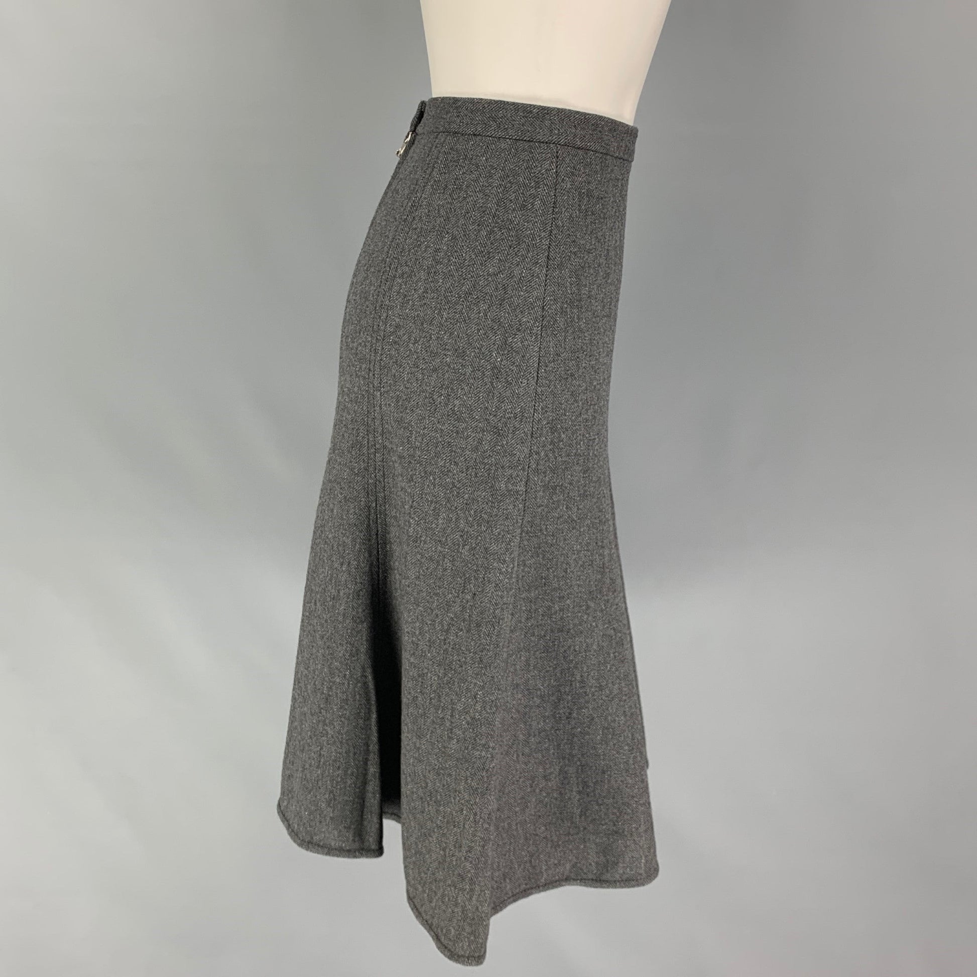DOLCE & GABBANA Size 4 Grey Wool Blend Herringbone Tulip Below Knee Skirt