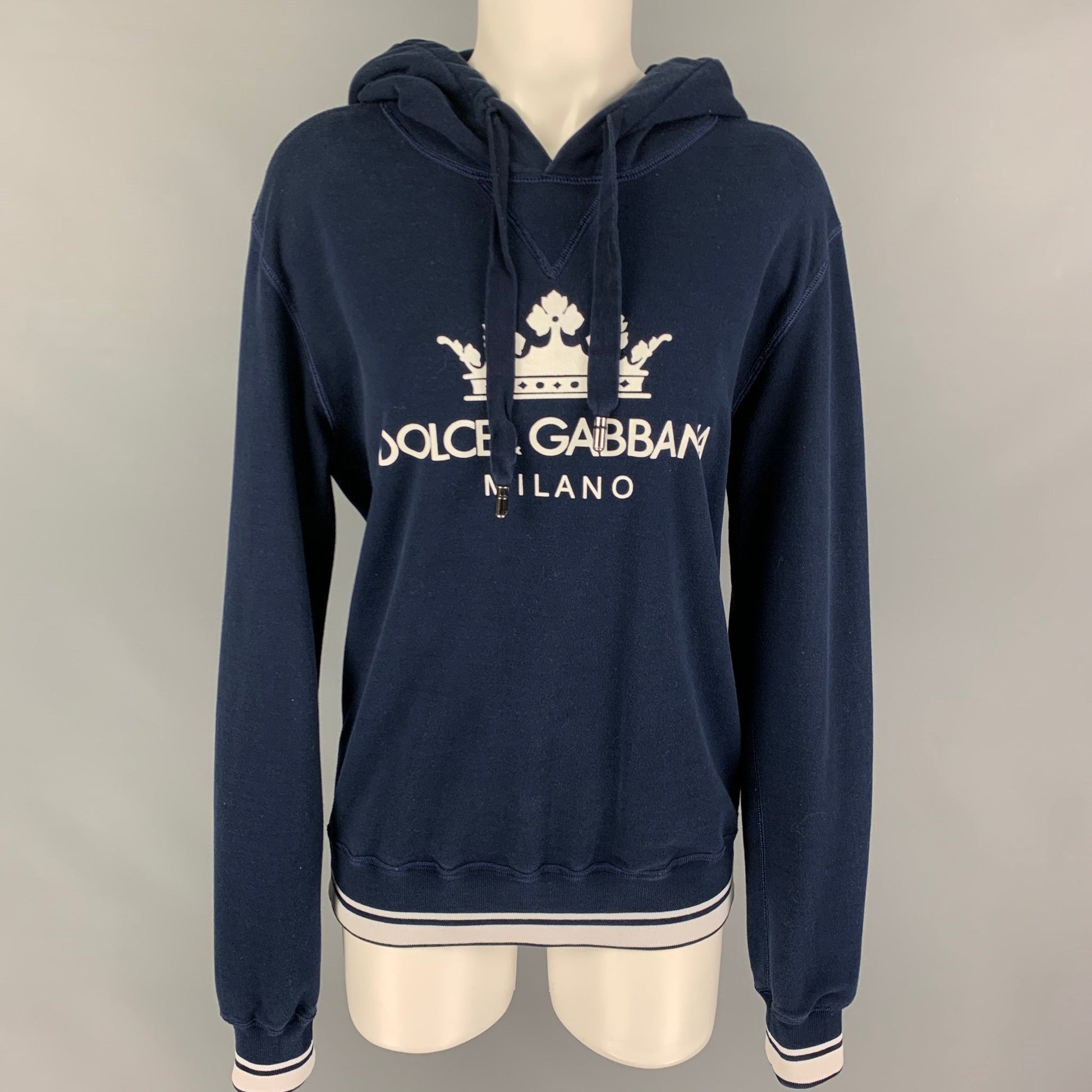 DOLCE & GABBANA Size 8 Navy White Cotton Polyester Logo Hoodie