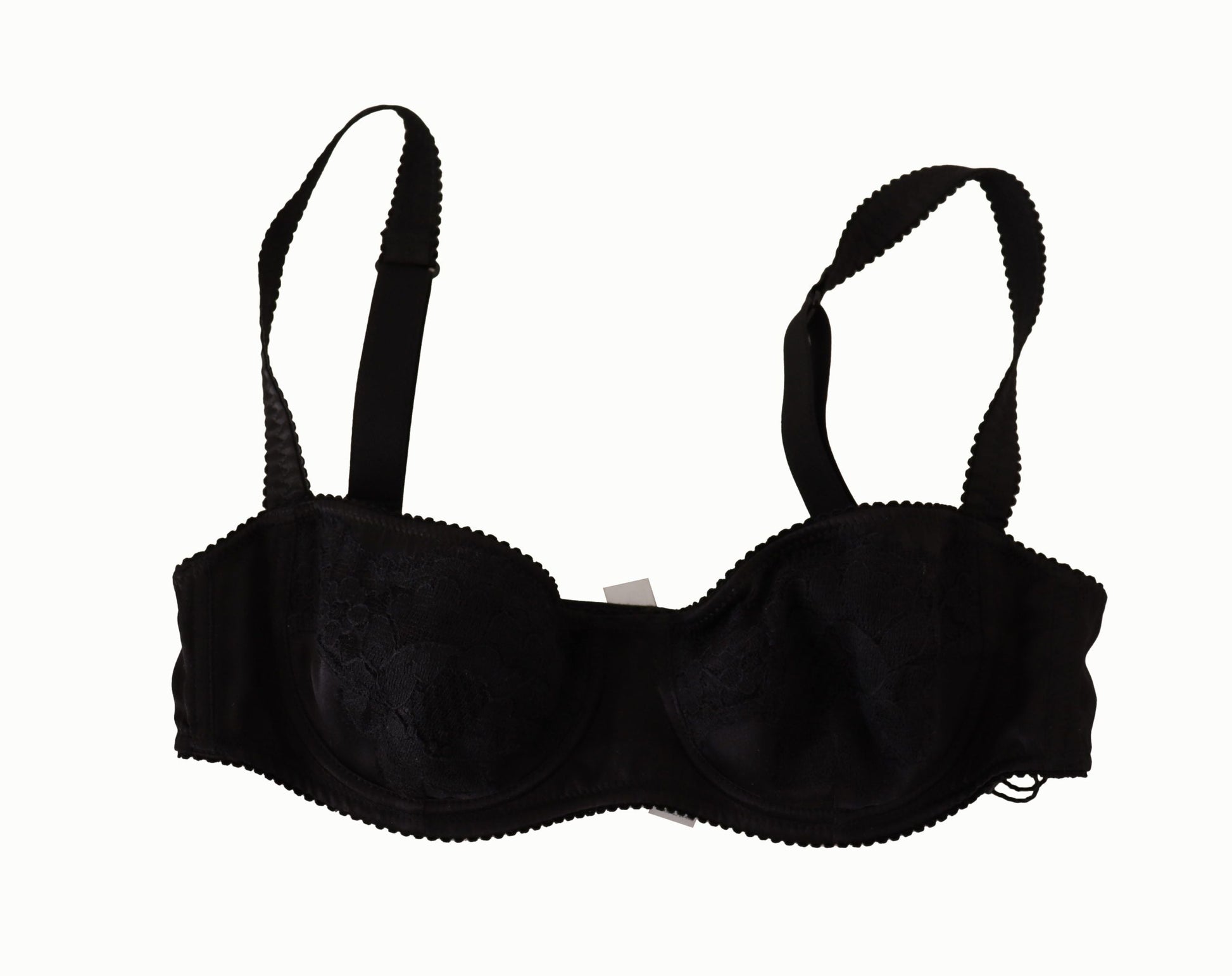Dolce & Gabbana Black Polka Dot Satin Lace Balconette Women's Bra