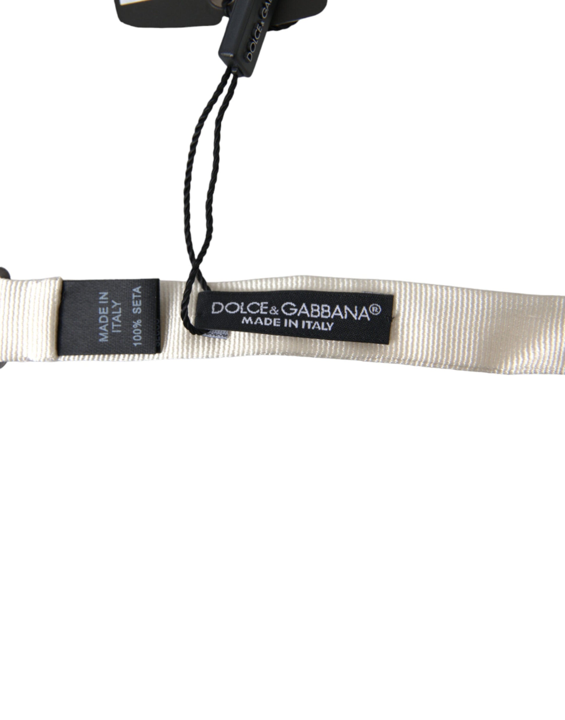 Dolce & Gabbana White Silk Slim Adjustable Neck Papillon Bow Men's Tie