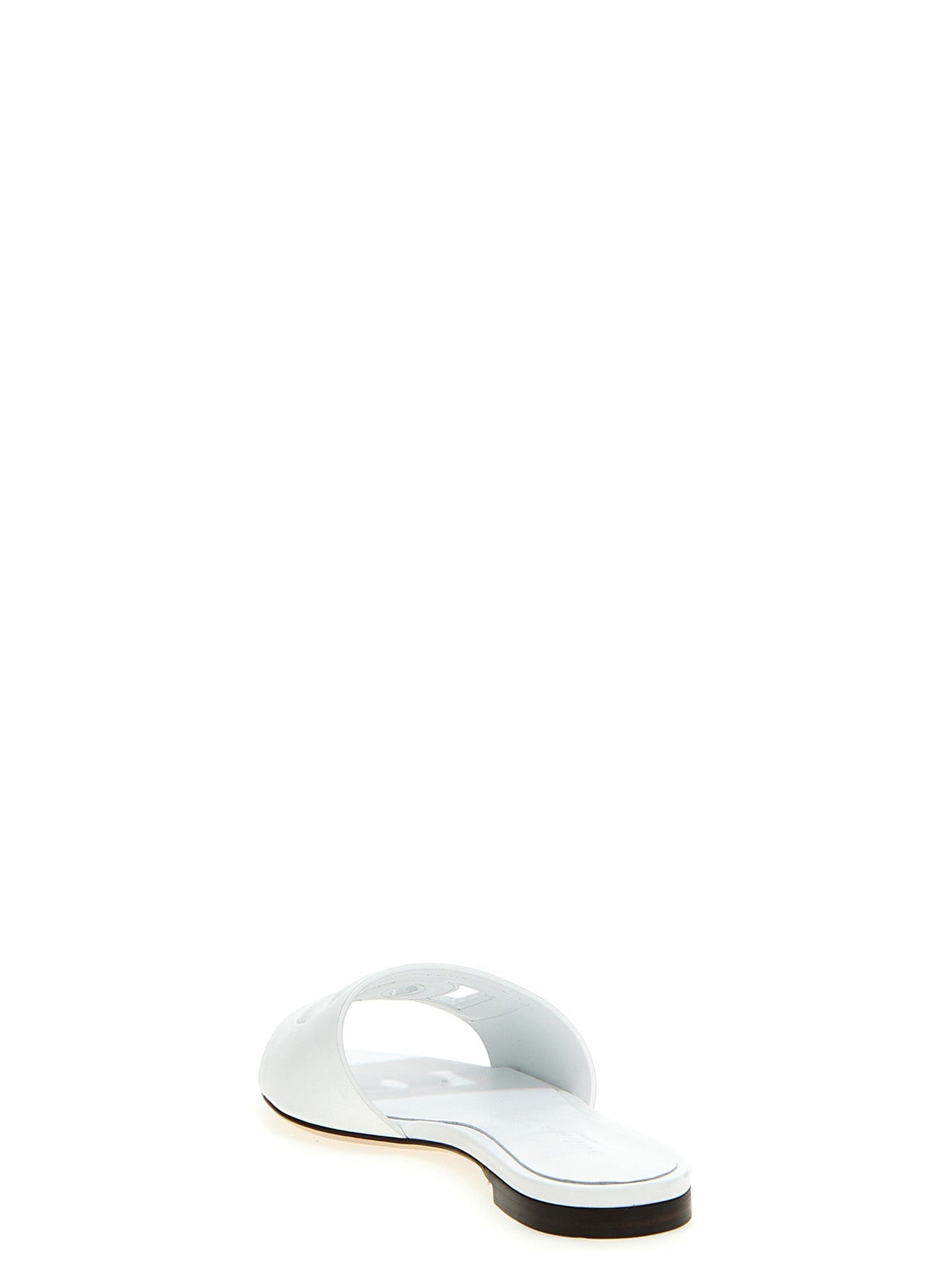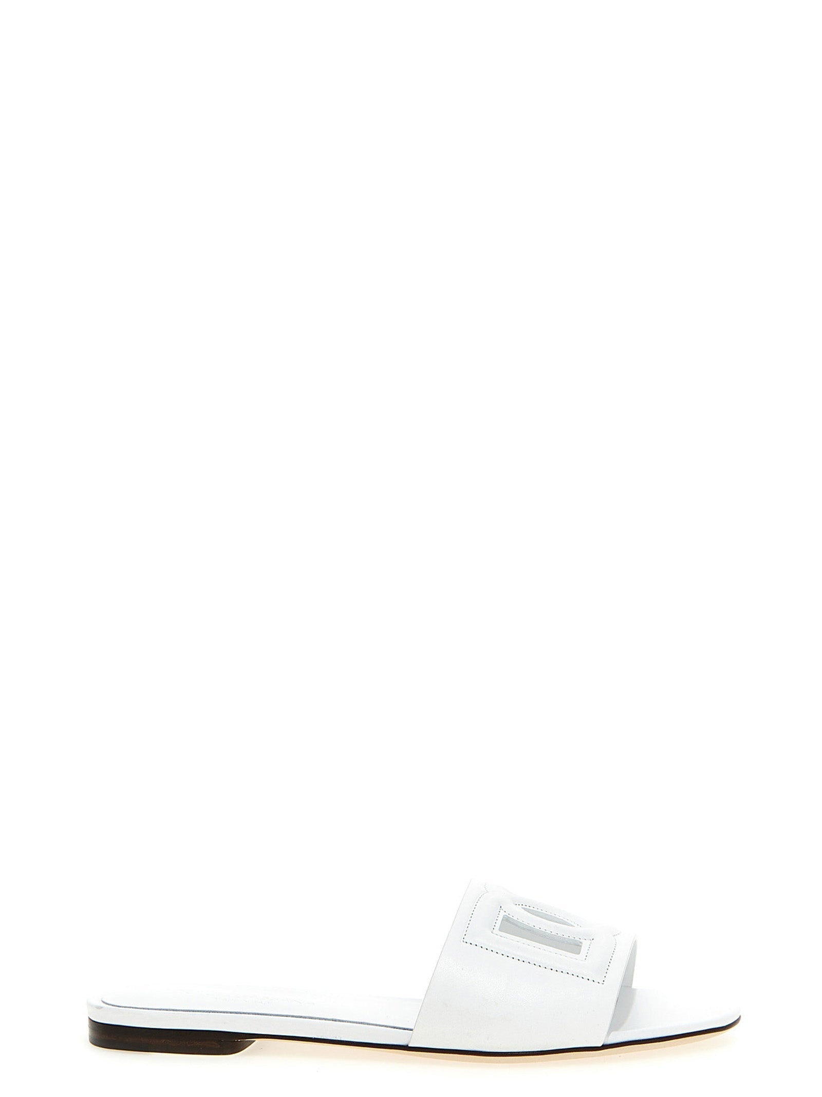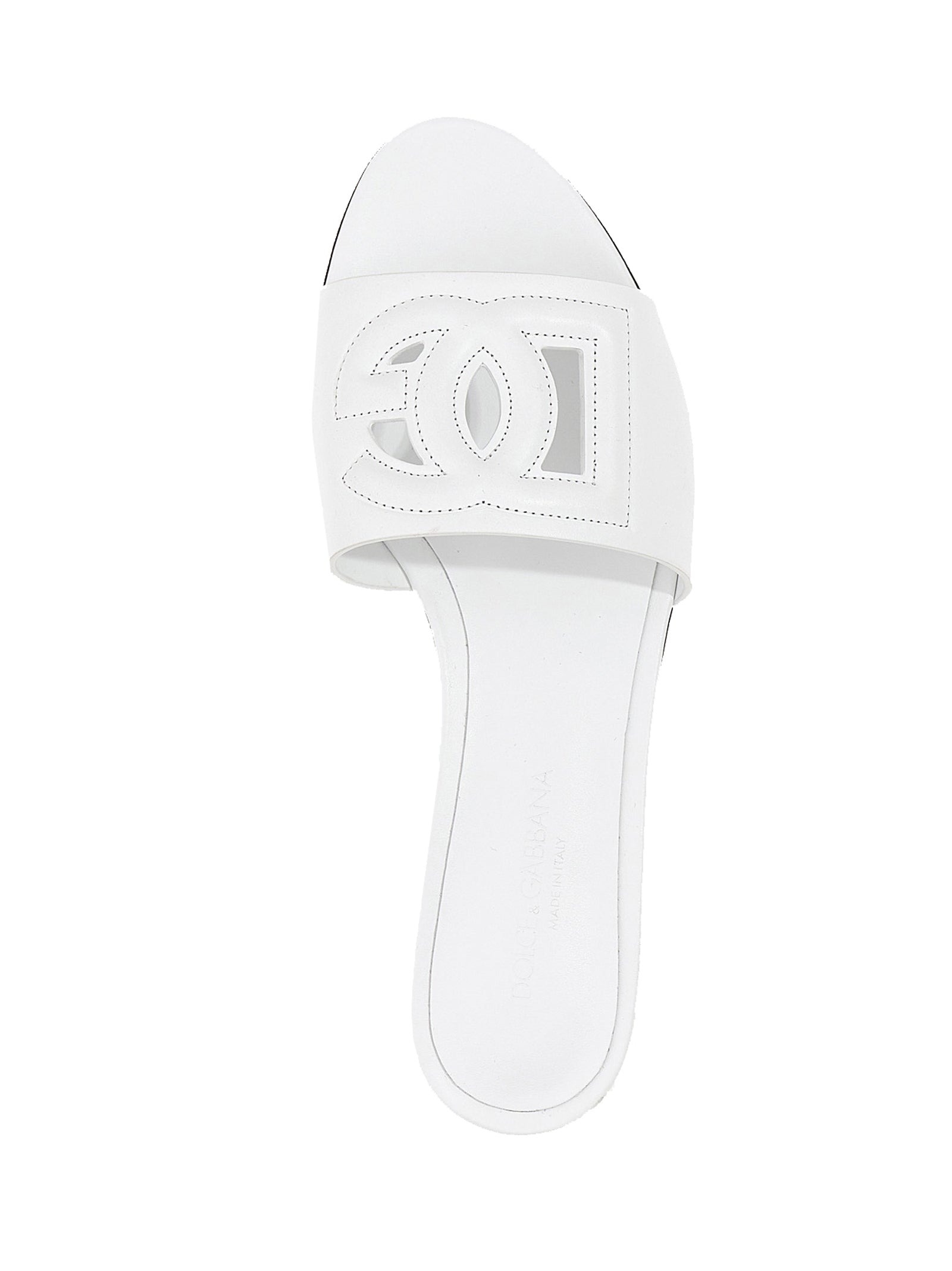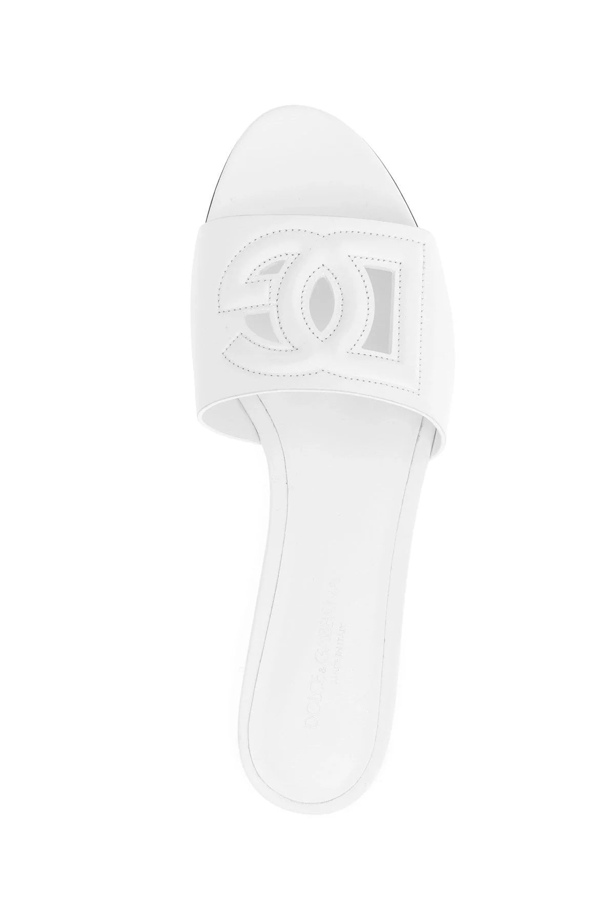 Calfskin leather slide with ‘DG Millennials’ cut-out front logo, leather sole.