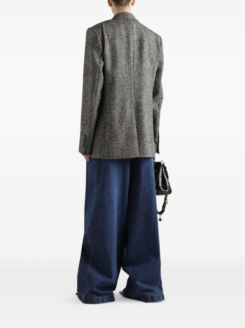Dolce & Gabbana Women Double-Breasted Herringbone Jacket With Animal Print Lining