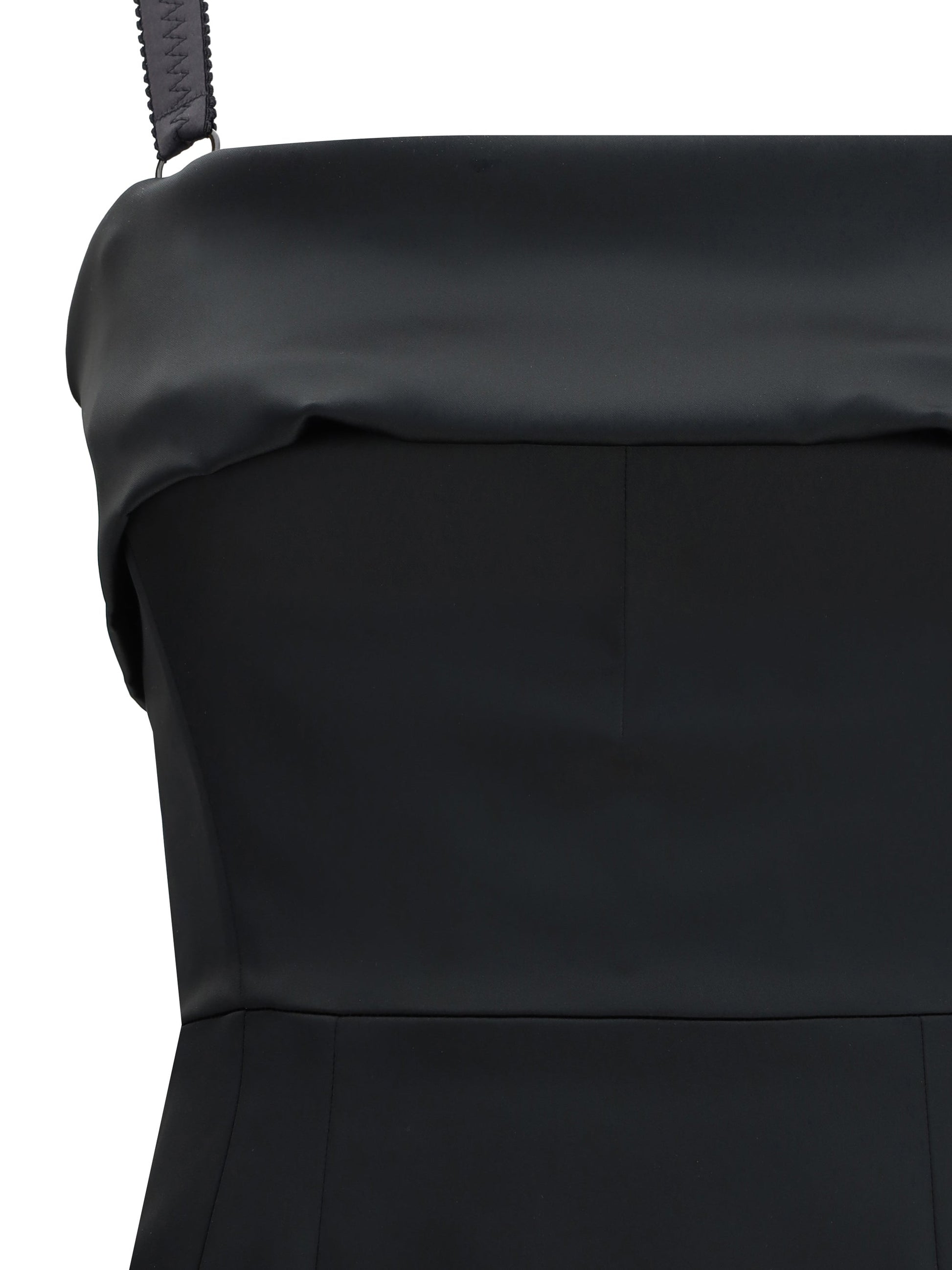 The Dolce&Gabbana Satin midi Dress is an elegant and feminine piece, designed to enhance the silhouette. The fitted model with shoulder straps features a straight neckline with a lapel that gives a sophisticated touch. The zip closure on the back and the rear slit complete the design with functionality and discreet sensuality.