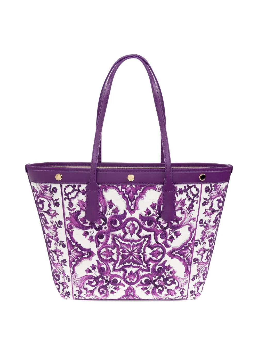 SHOPPING CANVAS ST+VIT.ALL The Atene shopping bag is a perfect combination of elegance and functionality, featuring a Maiolica print on canvas that recalls the art and culture of the Mediterranean. Atene shopping bag in Maiolica print canvas: • Multicolor • Leather handles • Snap button closure • Vintage brass buckle • External and internal customization with stamp and film • Removable pocket with zip • Item equipped with a branded bag • Measurements: H30 x W45 x D8 cm • Made in Italy The difference in placement of the prints that you may find on this product is a characteristic of the Dolce&Gabbana “Handmade”. A peculiarity that makes each item or accessory unique and exclusive. ID BB7826AN220 Leather | 05%PA+90%Mais+05%Vitello KG 2