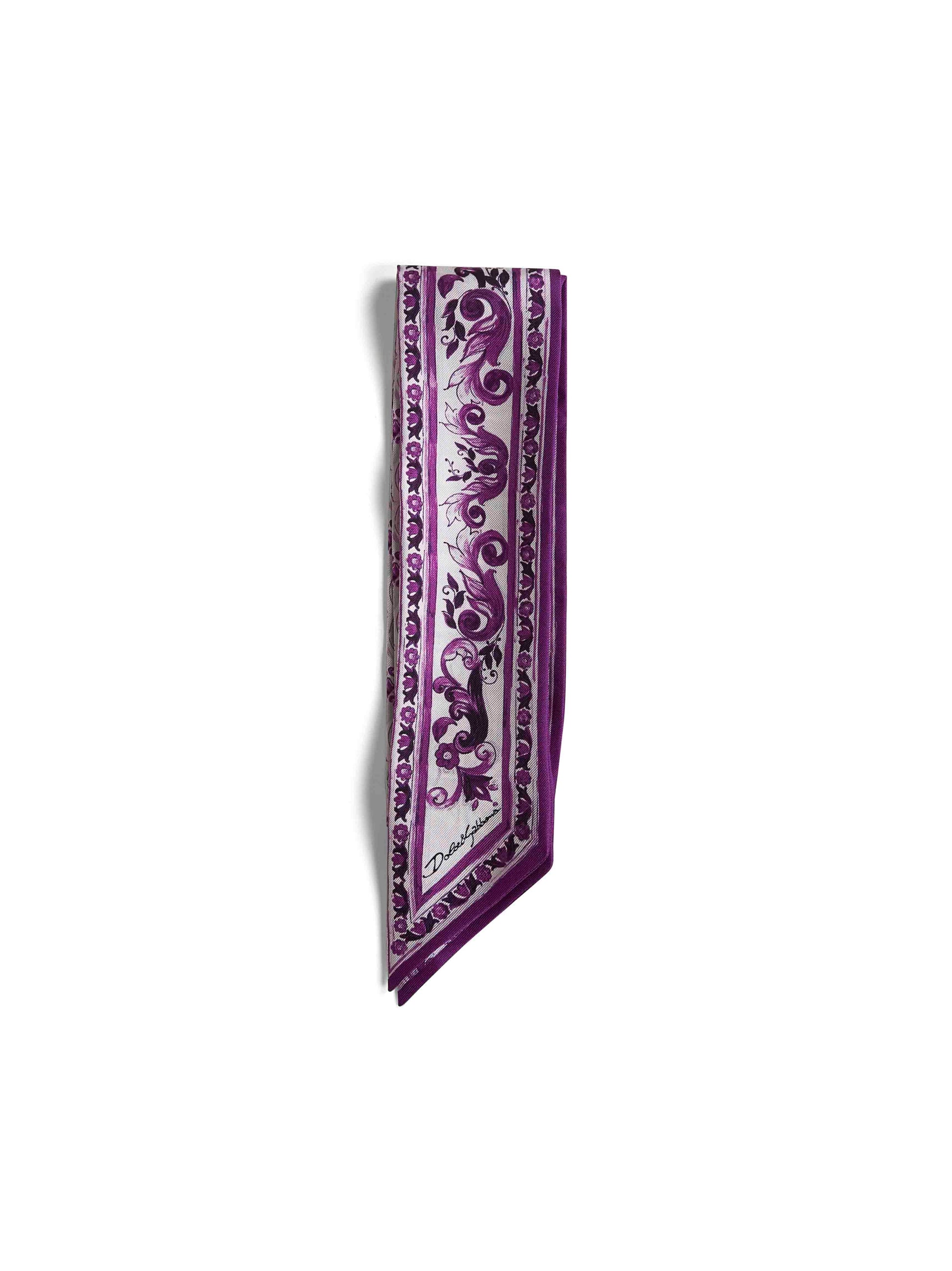 •Pointed ends; contrasting logo at bottom •Purple Maiolica print •6 X 100 cm •White color •100% Silk •Made in Italy