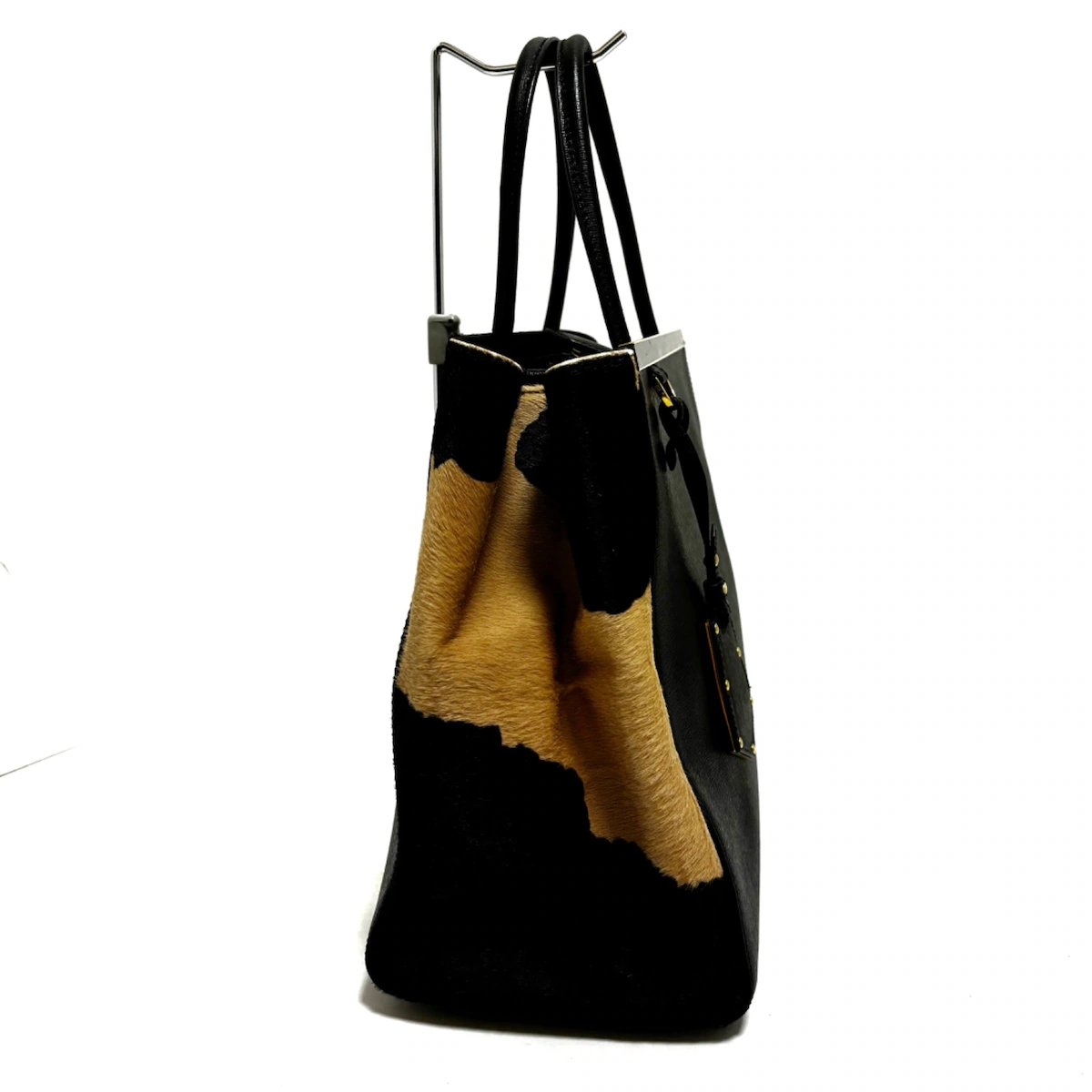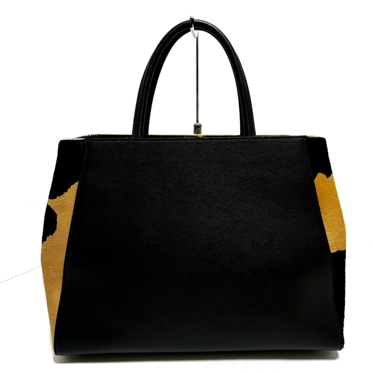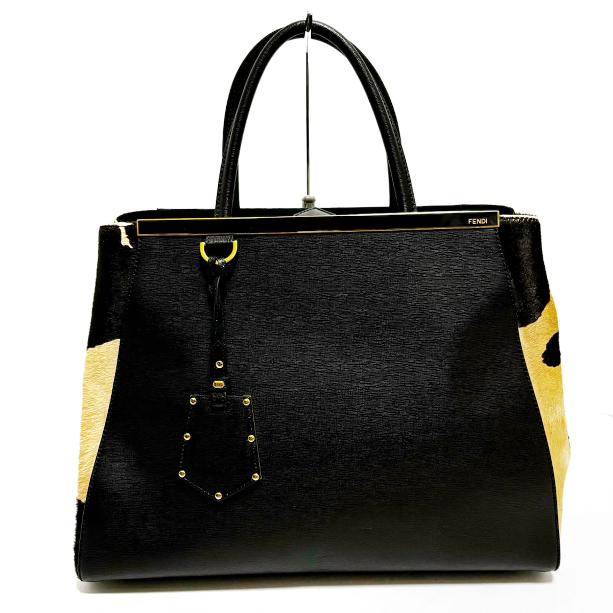 FENDI - 2 Jours Tote Bag Black Beige Dark Brown Leather Unborn Calf