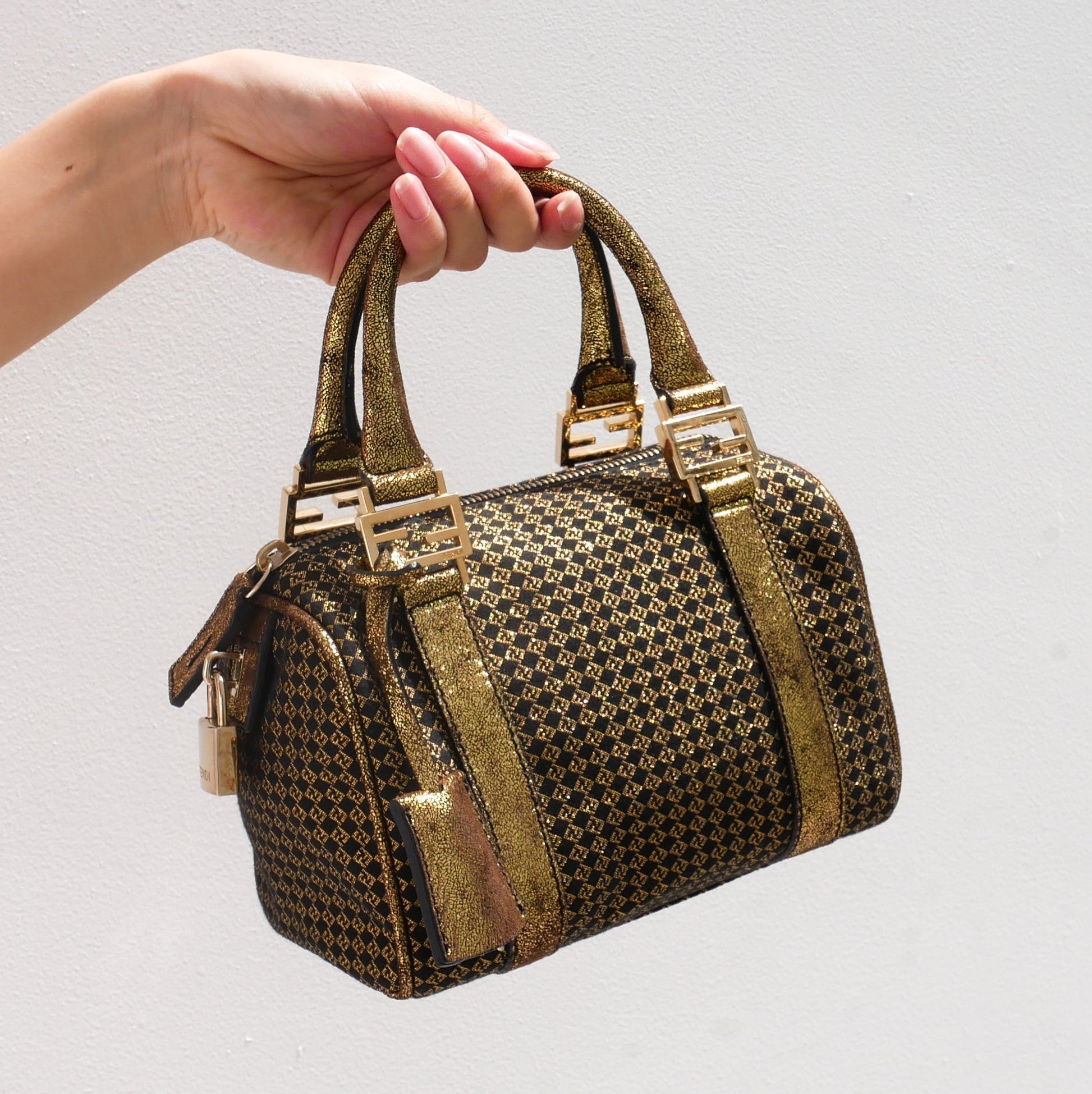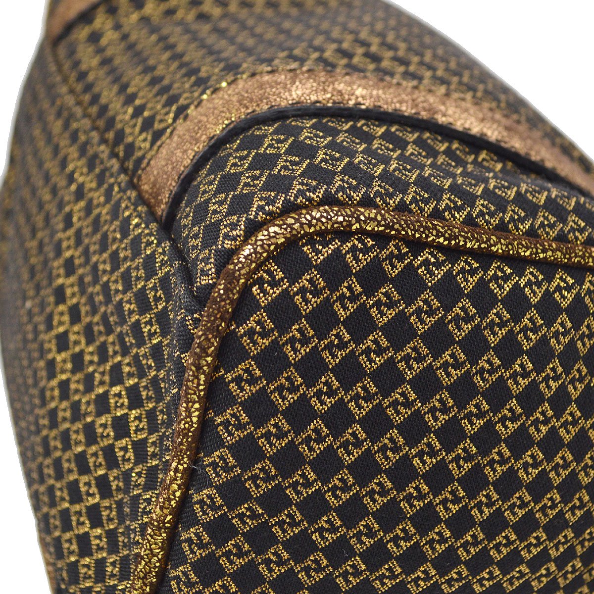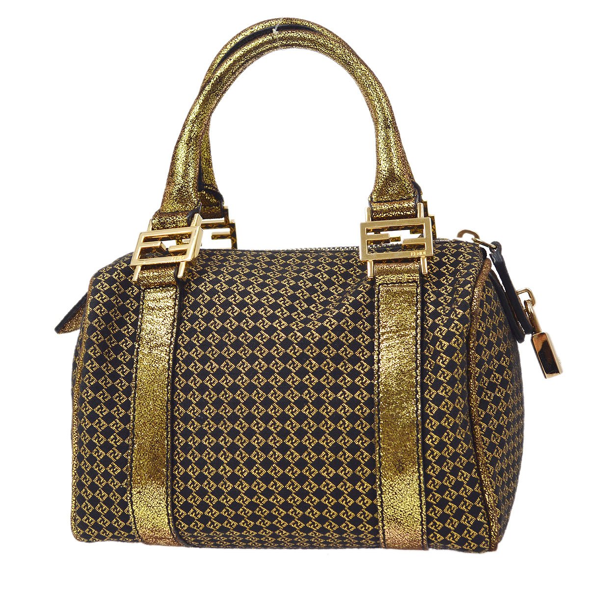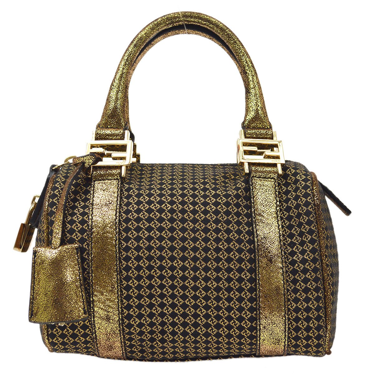 FENDI Micro Zucchino Mini Boston Hand Bag Gold Black