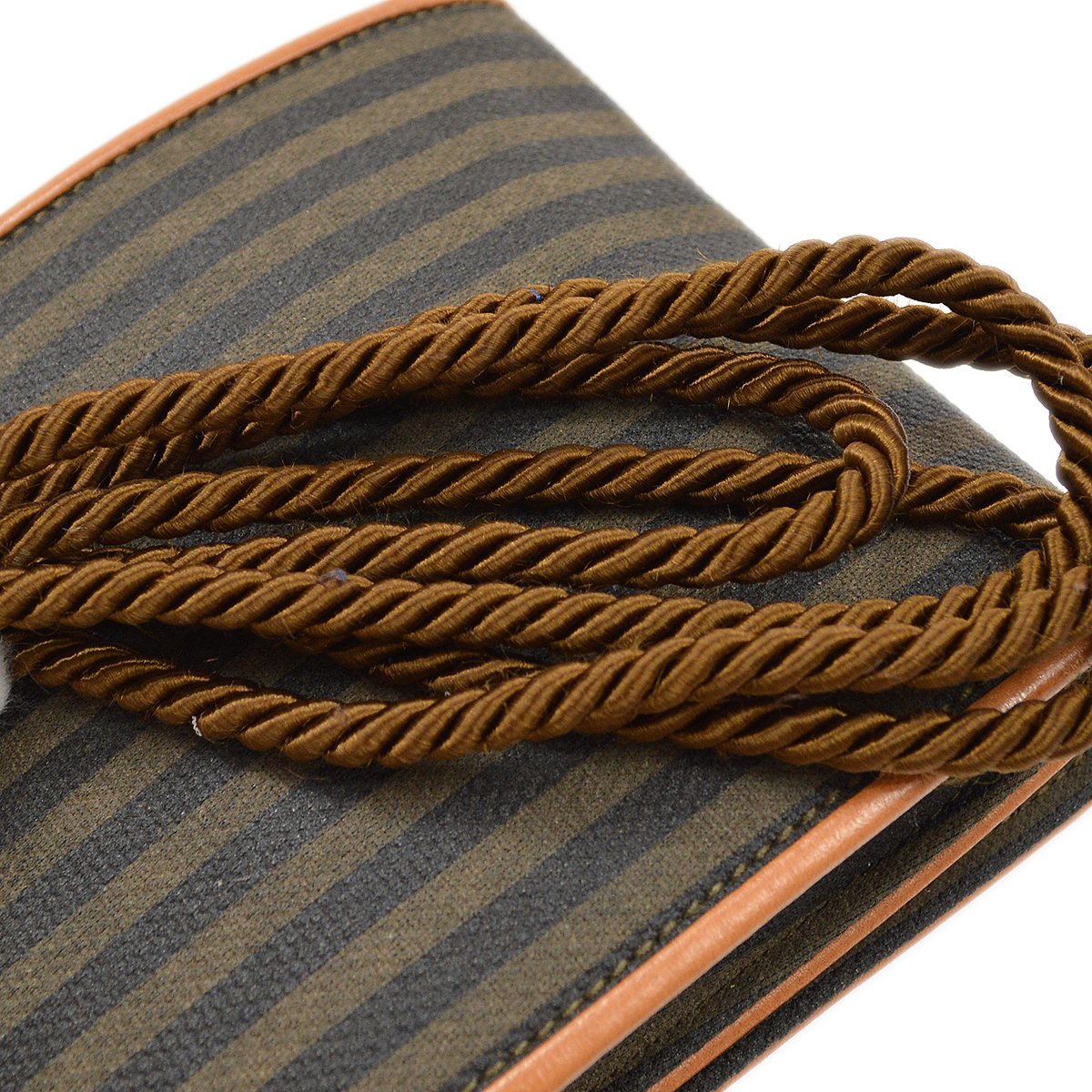 FENDI 70s Pequin Pattern Shoulder Pochette Bag Brown