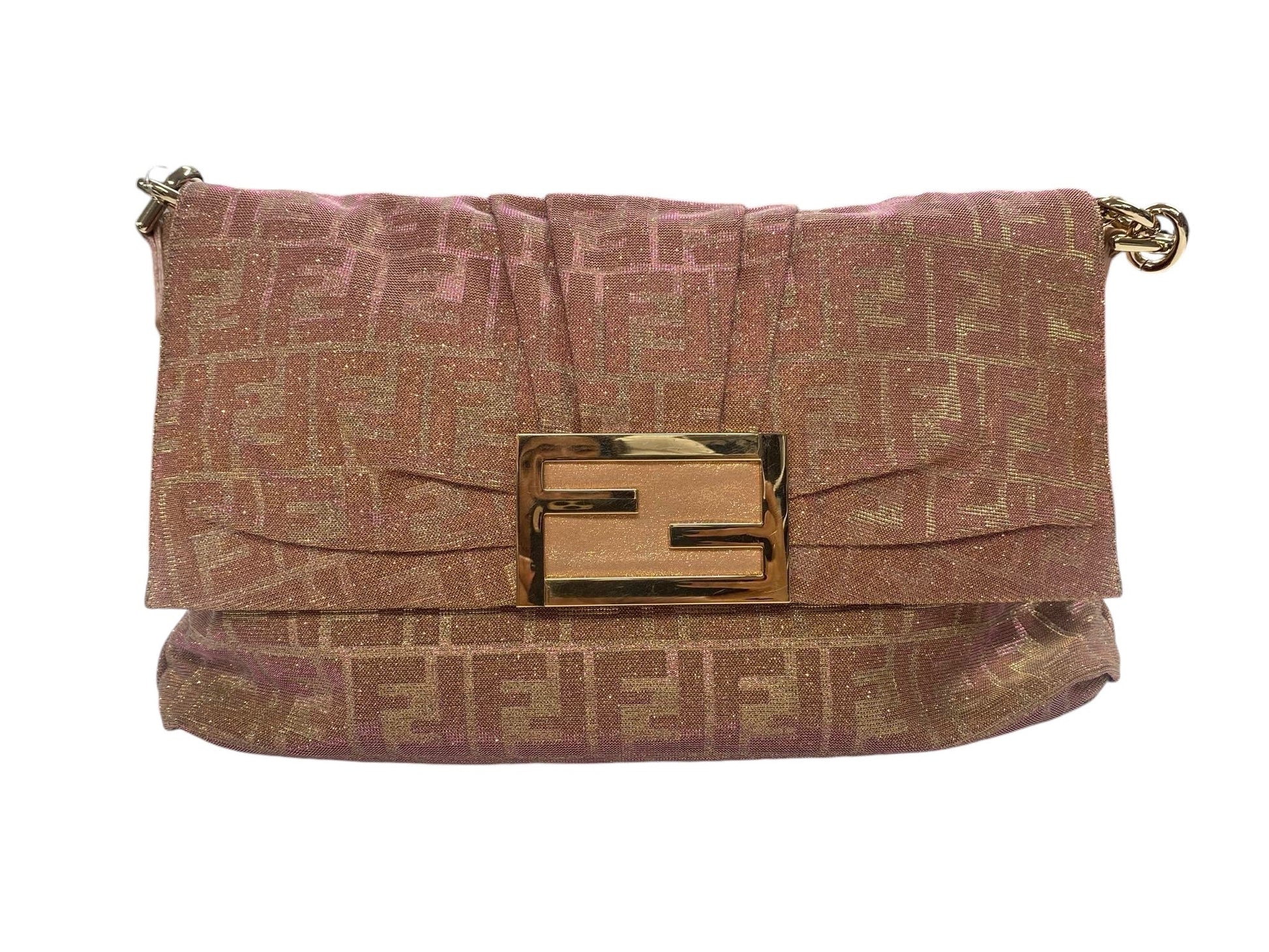 FENDI - Arancio Metallic Lurex Mia Zucca Large Flap Shoulder Bag