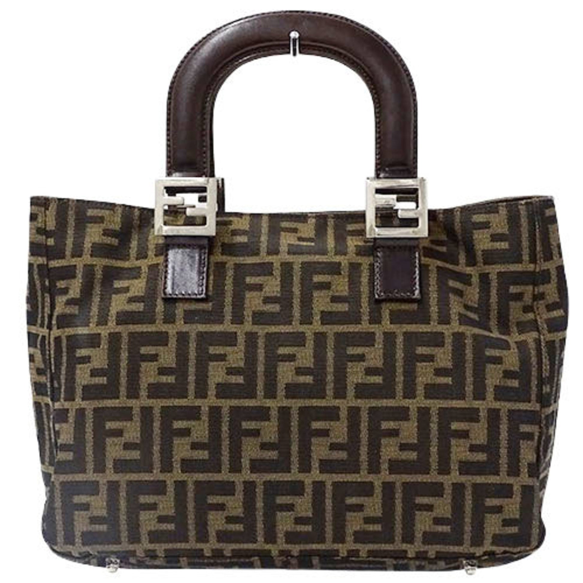 Fendi Bag Ladies Handbag Zucca Canvas Brown Khaki 26329 Compact