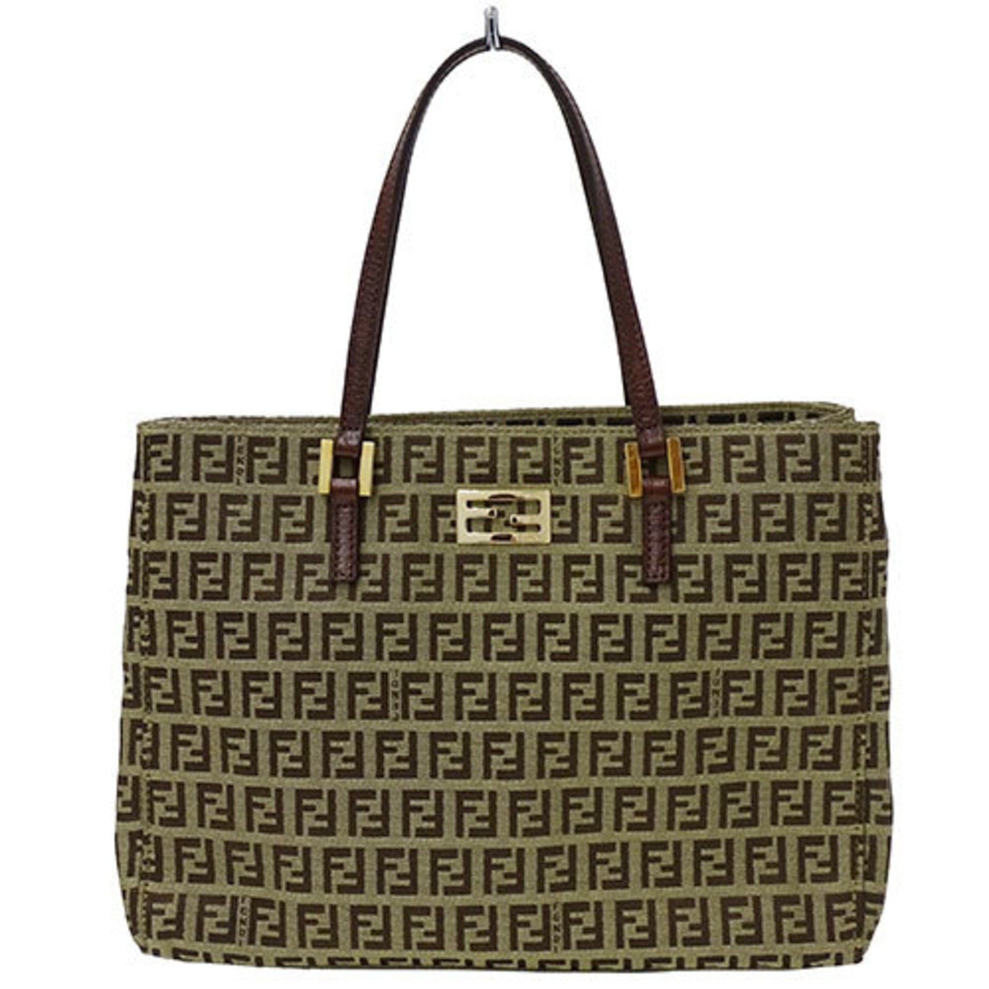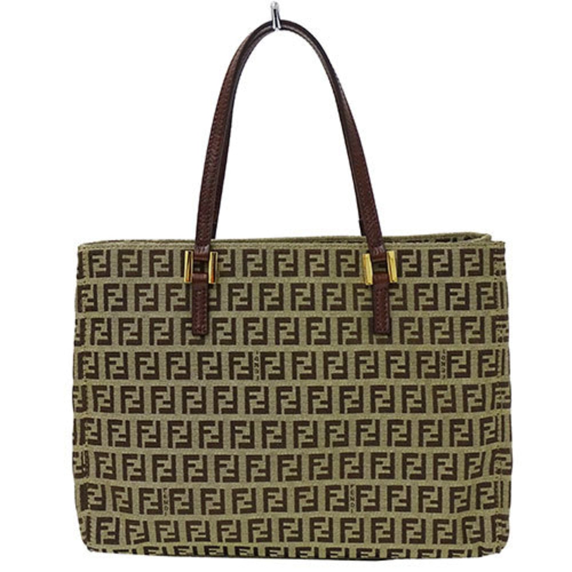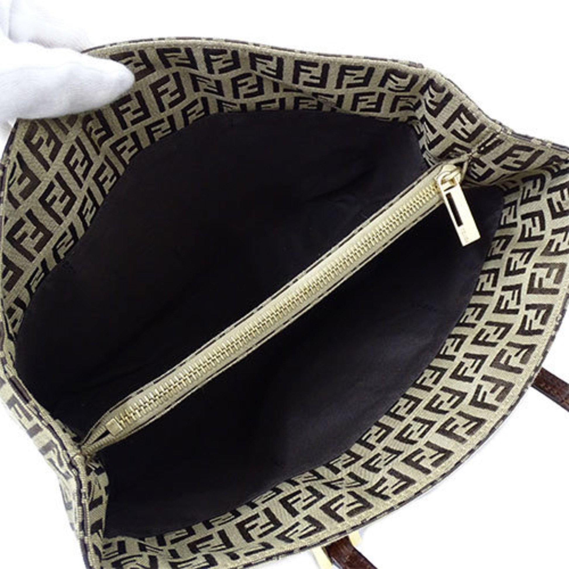 FENDI Bag Women's Zucchino Handbag Canvas Leather Beige Brown 8BH132 Zucca Pattern