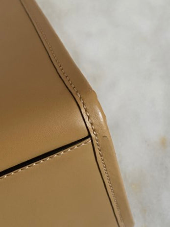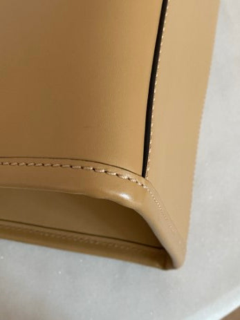 - Material: Beige Smooth Calf Leather with Stamped “FENDI ROMA” and Tortoiseshell Effect Plexiglass Handles