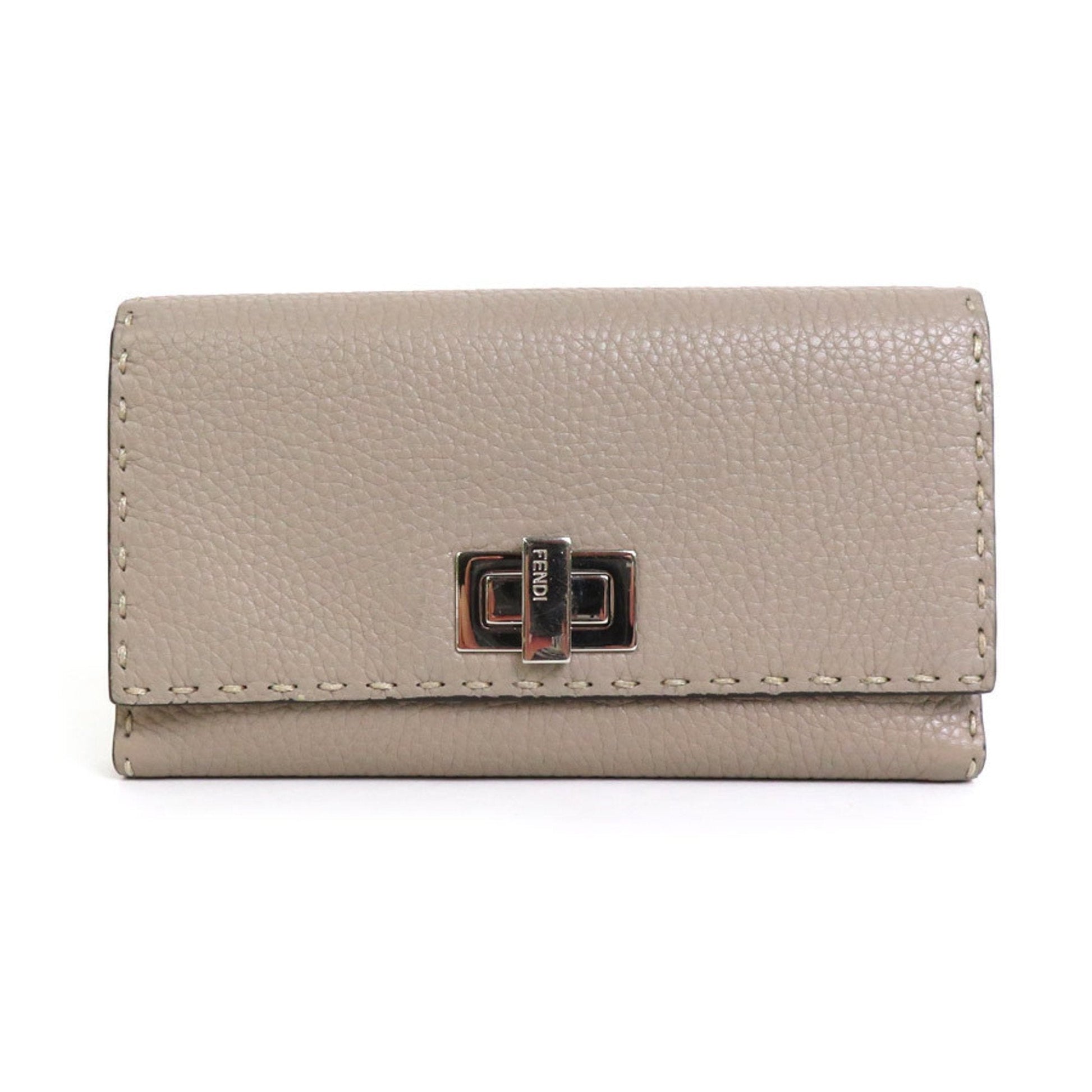 Fendi Bifold Long Wallet Selleria Leather Greige Silver Women's