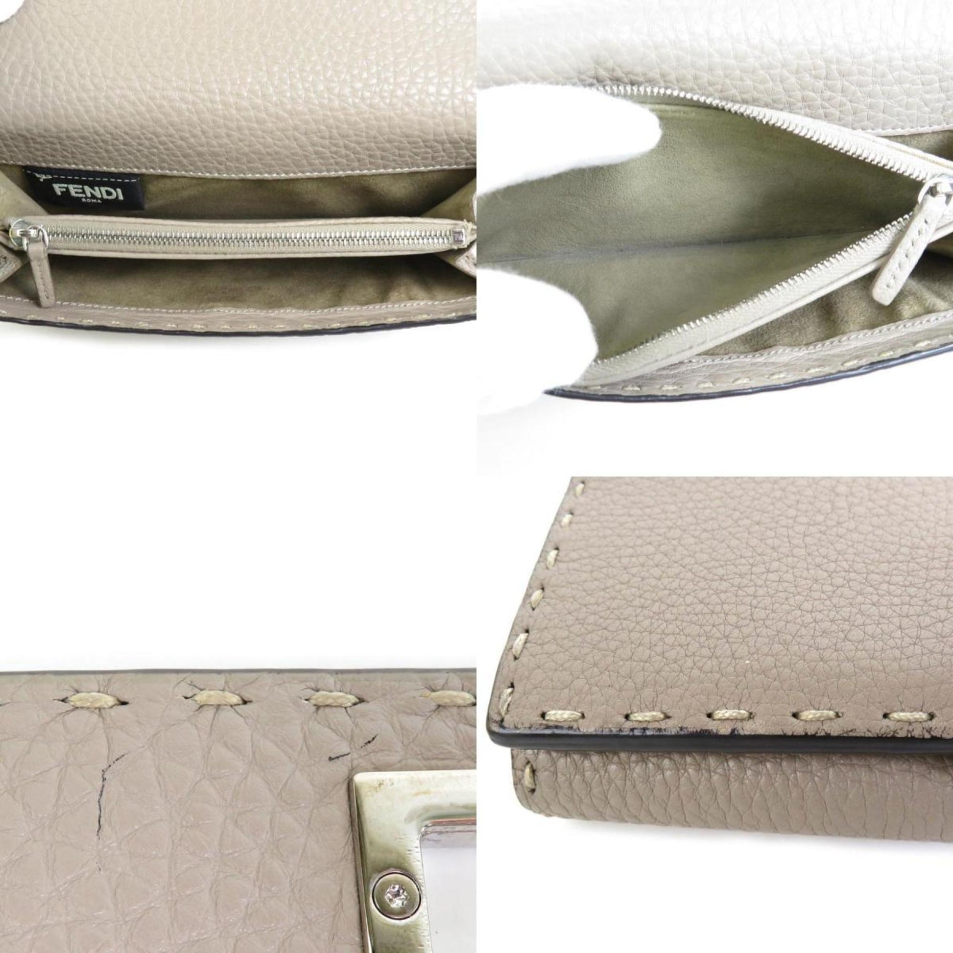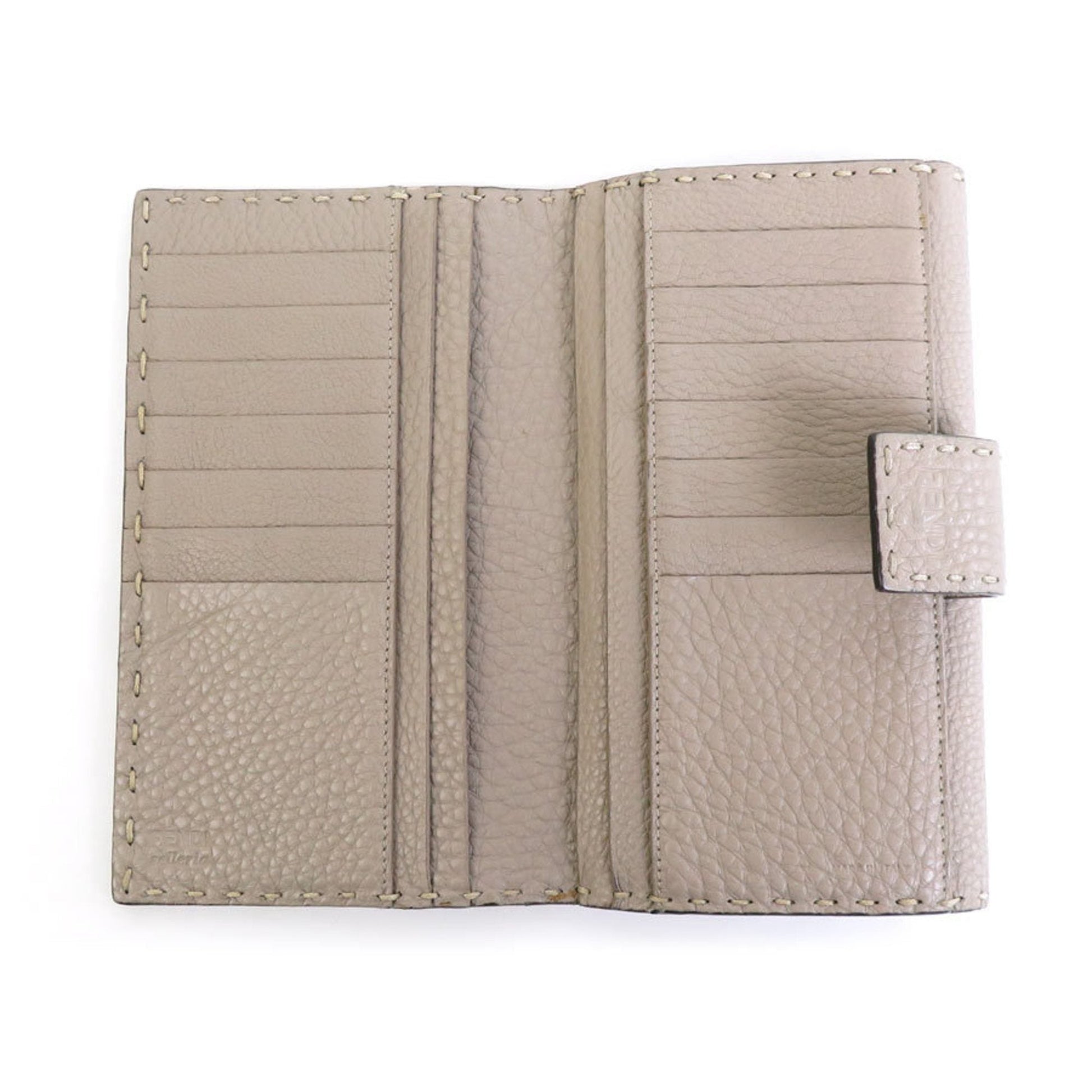 FENDI Bifold Long Wallet Selleria Leather Greige Silver Women's