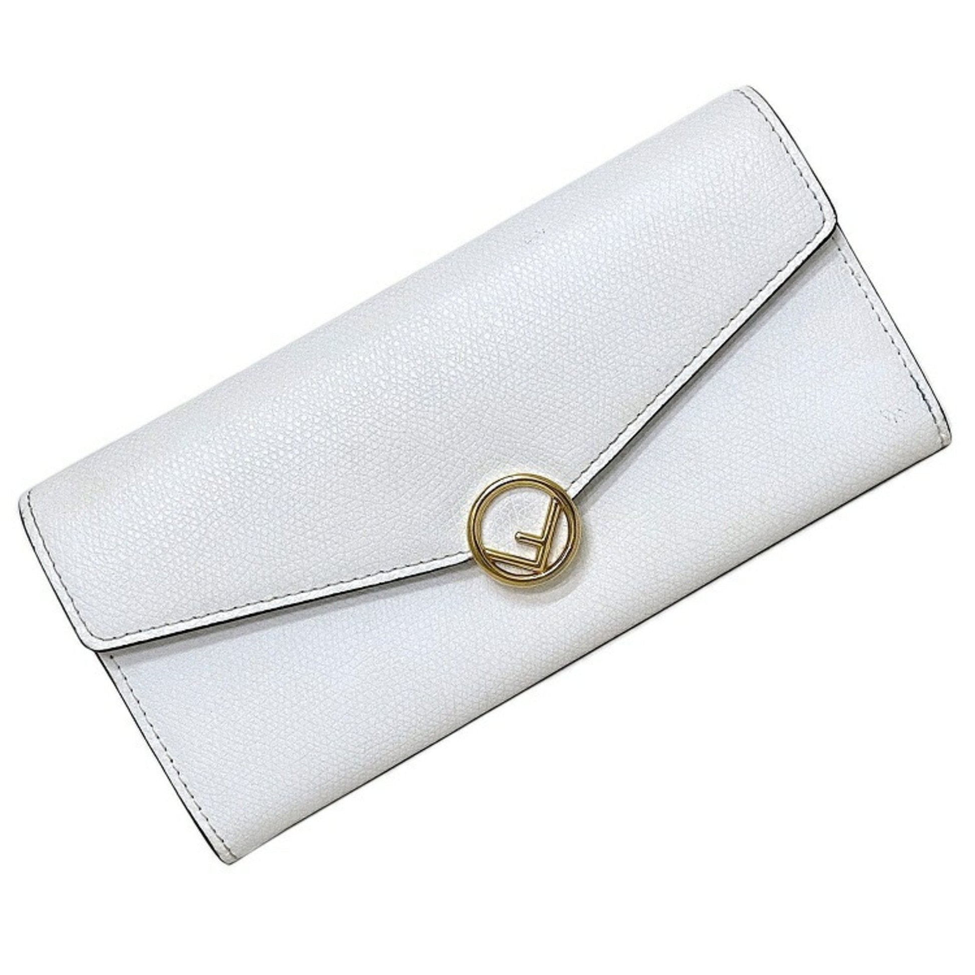 Fendi Bifold Long Wallet White Gold Fizu 8M0251 A18B Leather GP FENDI Women's