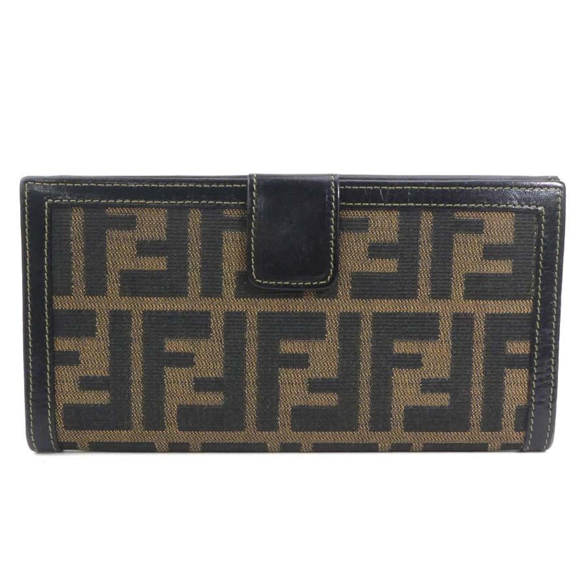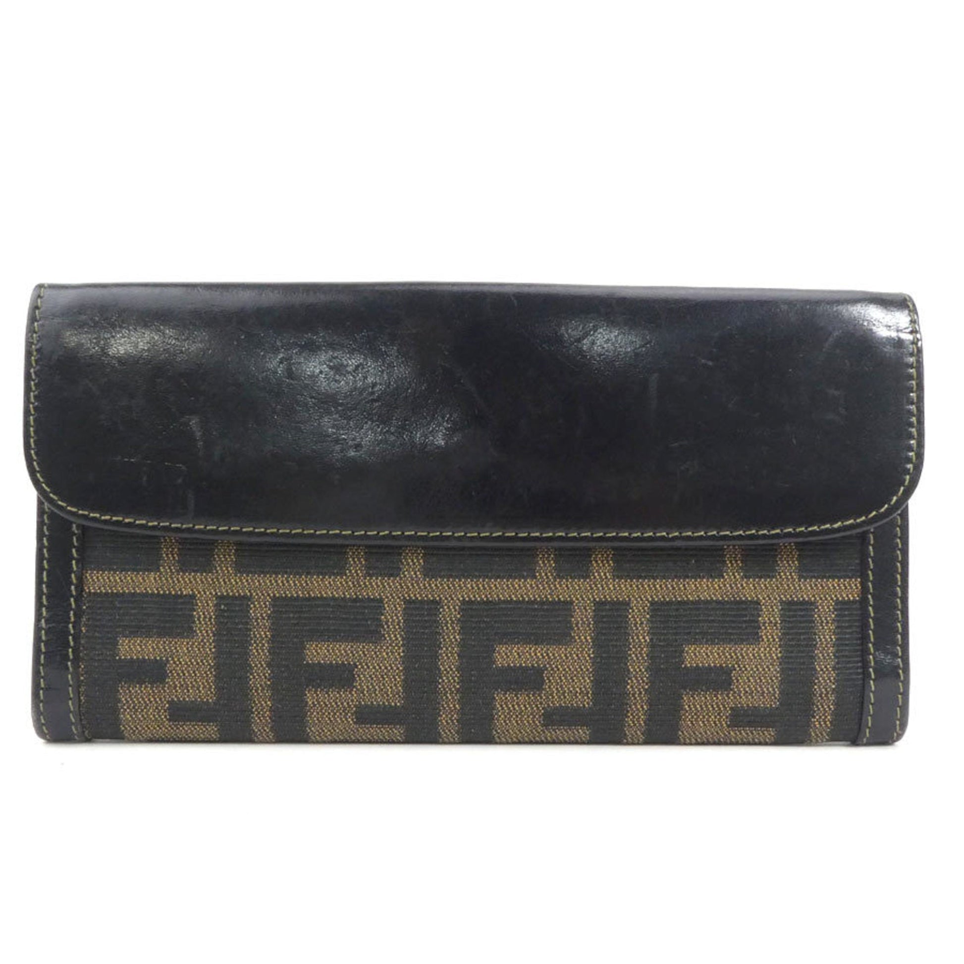 FENDI Bifold Long Wallet Zucca Canvas/Leather Brown Ladies