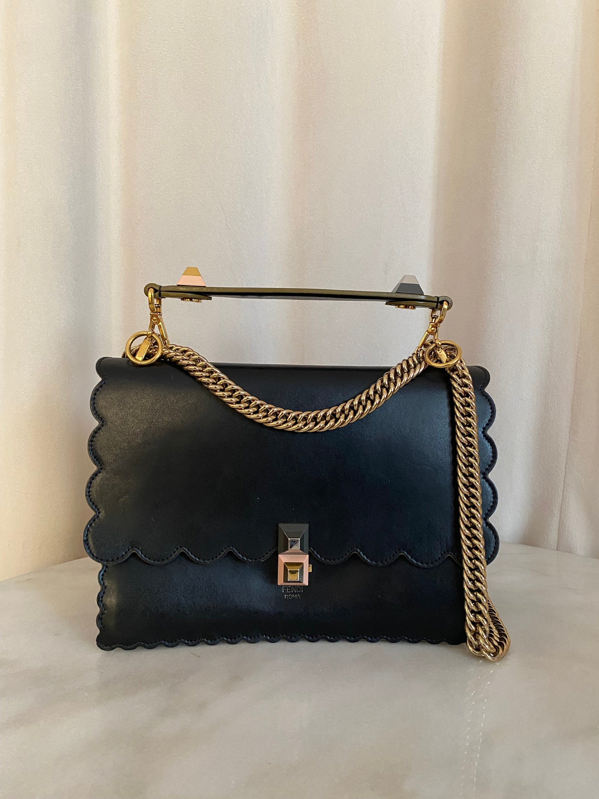 Fendi Black Kan I Vitello Liberty Studded Shoulder Bag
