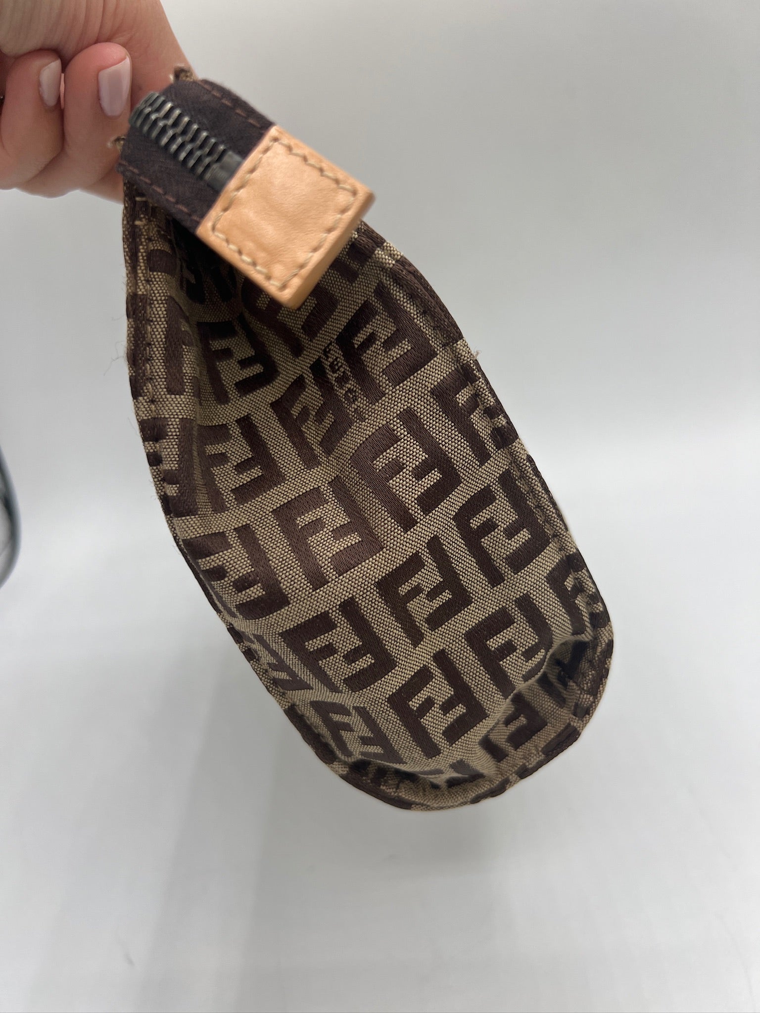 Elevate your style with FENDI's Brown Dark Brown Jacquard Leather Pouch! Featuring the iconic FENDI brand and crafted from high-quality jacquard and leather, this bag is not only stylish but also durable. With the perfect size and no accessories needed, it's the ideal bag for any occasion.