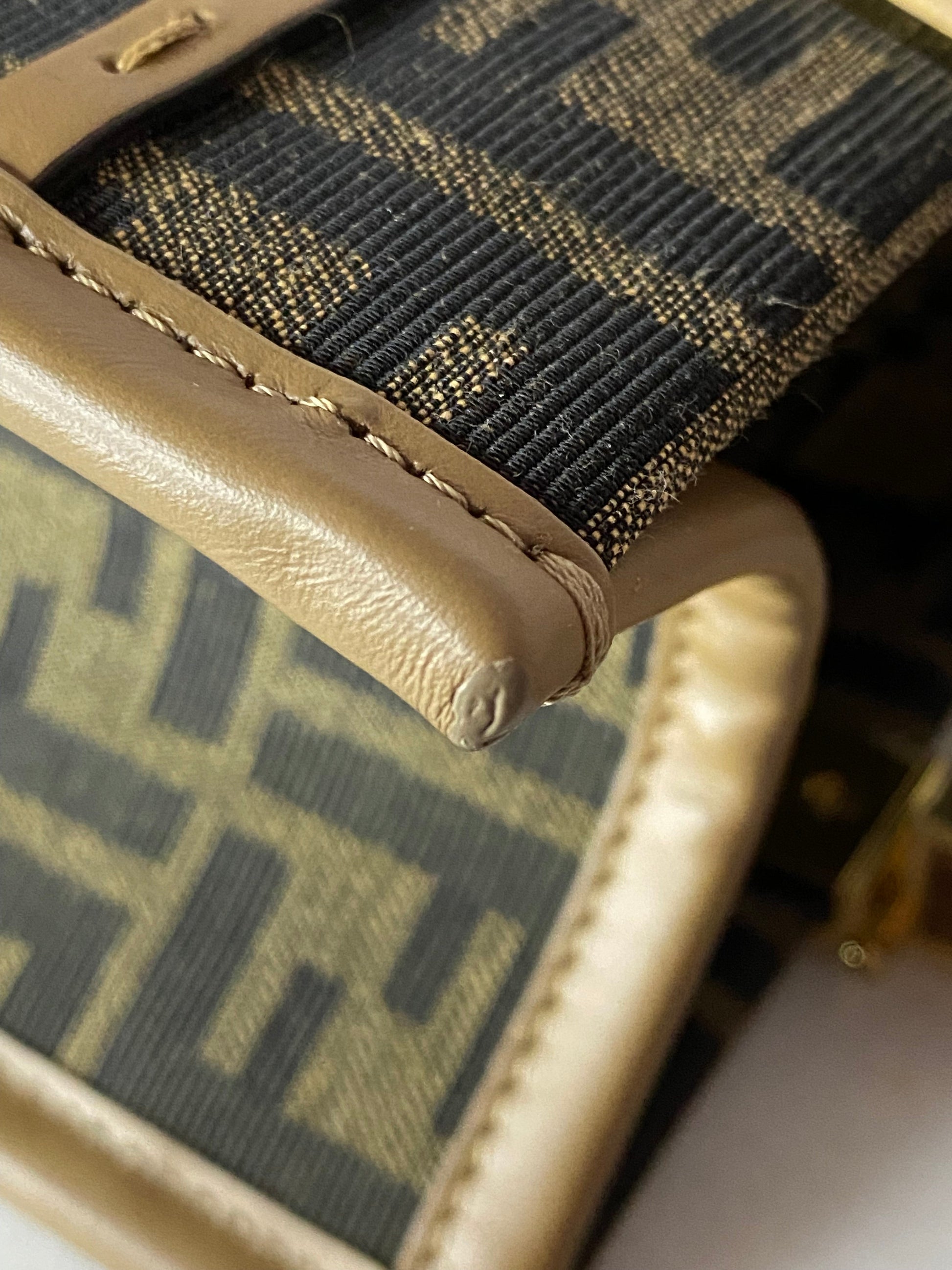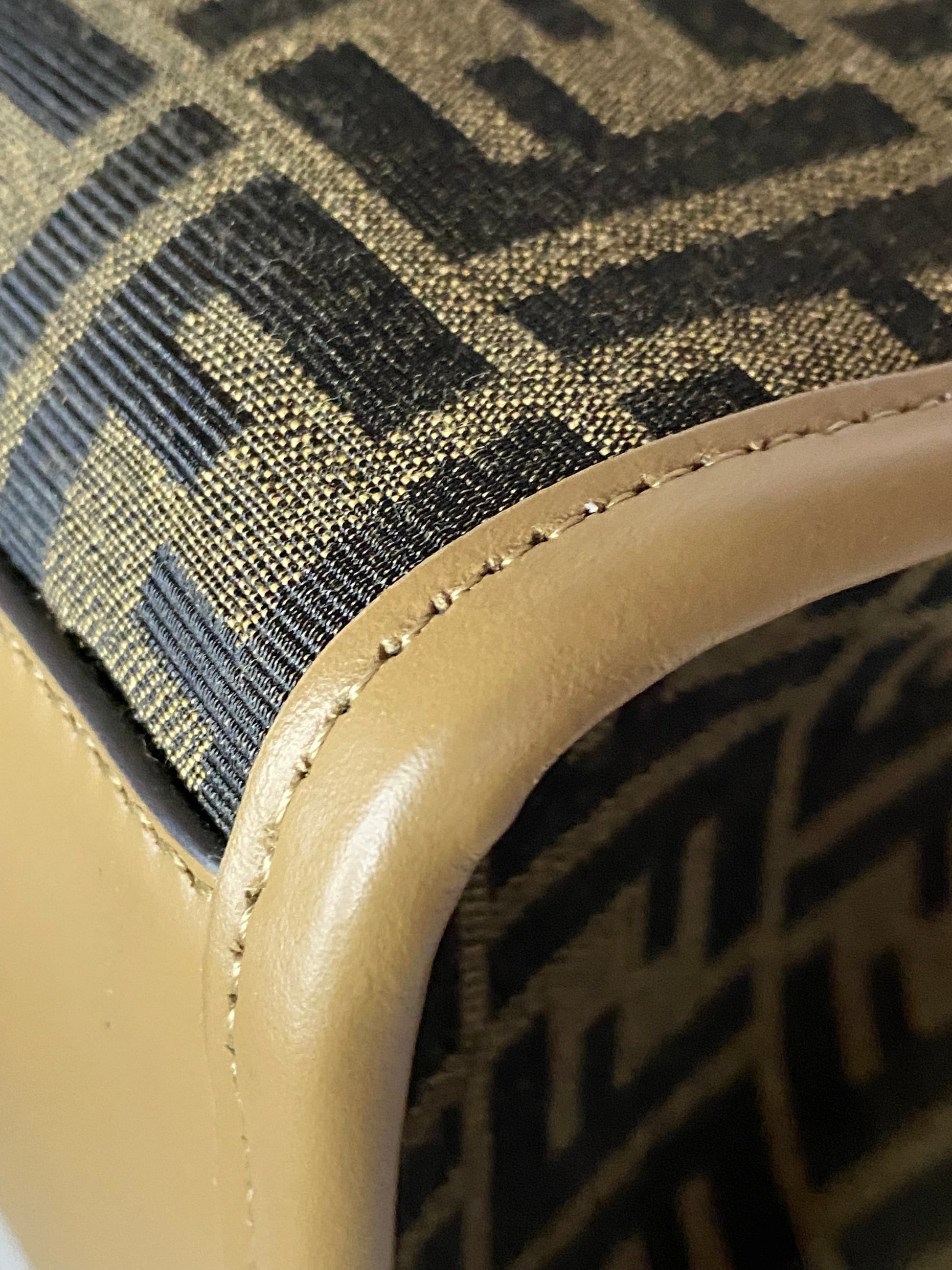 - Material: Brown FF Jacquard Motif with Stamped “FENDI ROMA” and Leather Trim