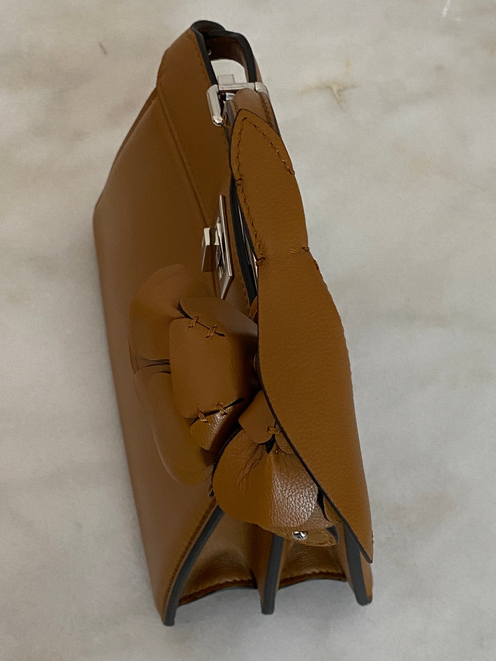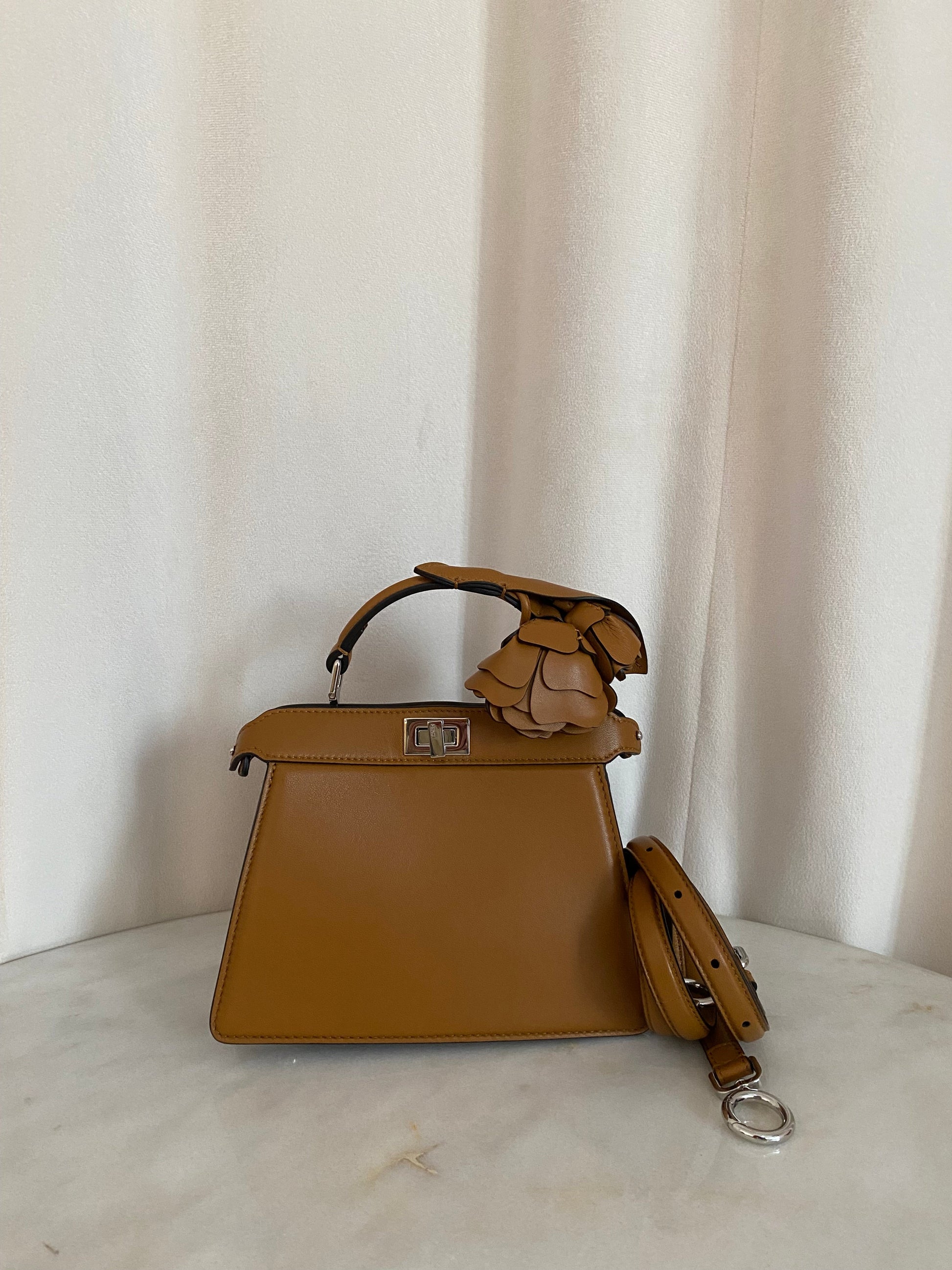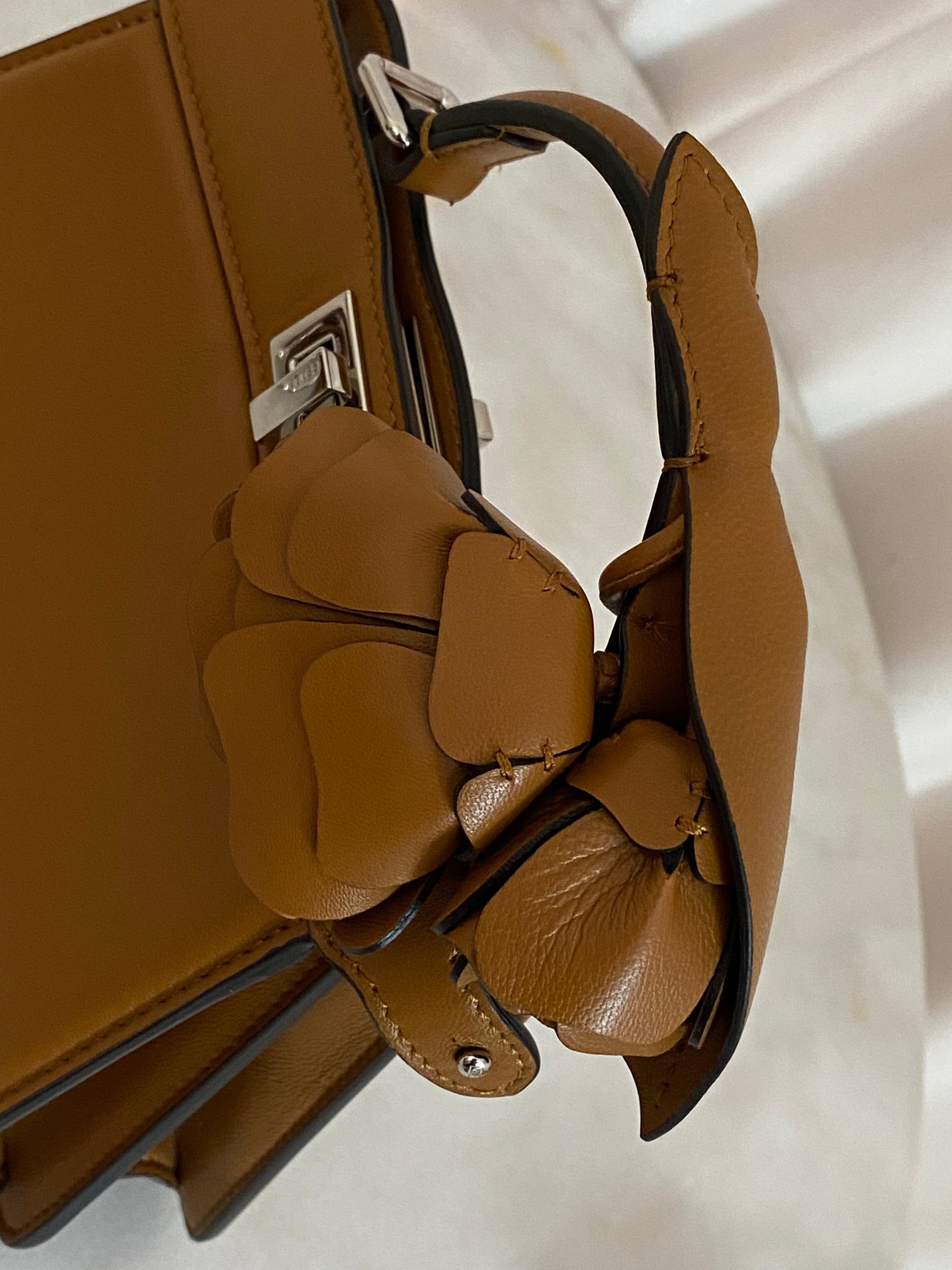 Fendi Brown Flower Petite Peekaboo Top Handle Bag W/ Strap