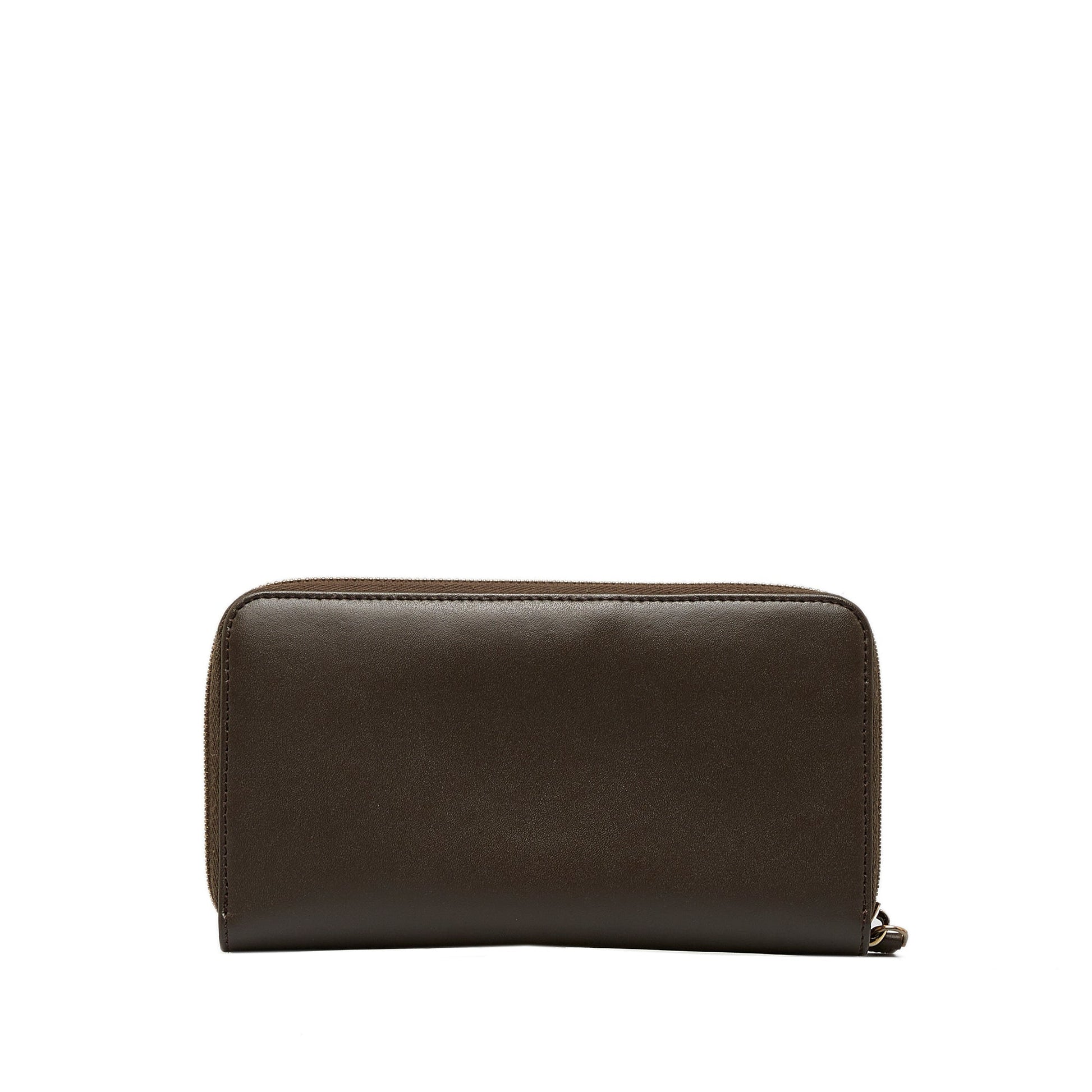 This wallet features a leather body, zip around closure, and interior zip and slip pockets. Comes with box.