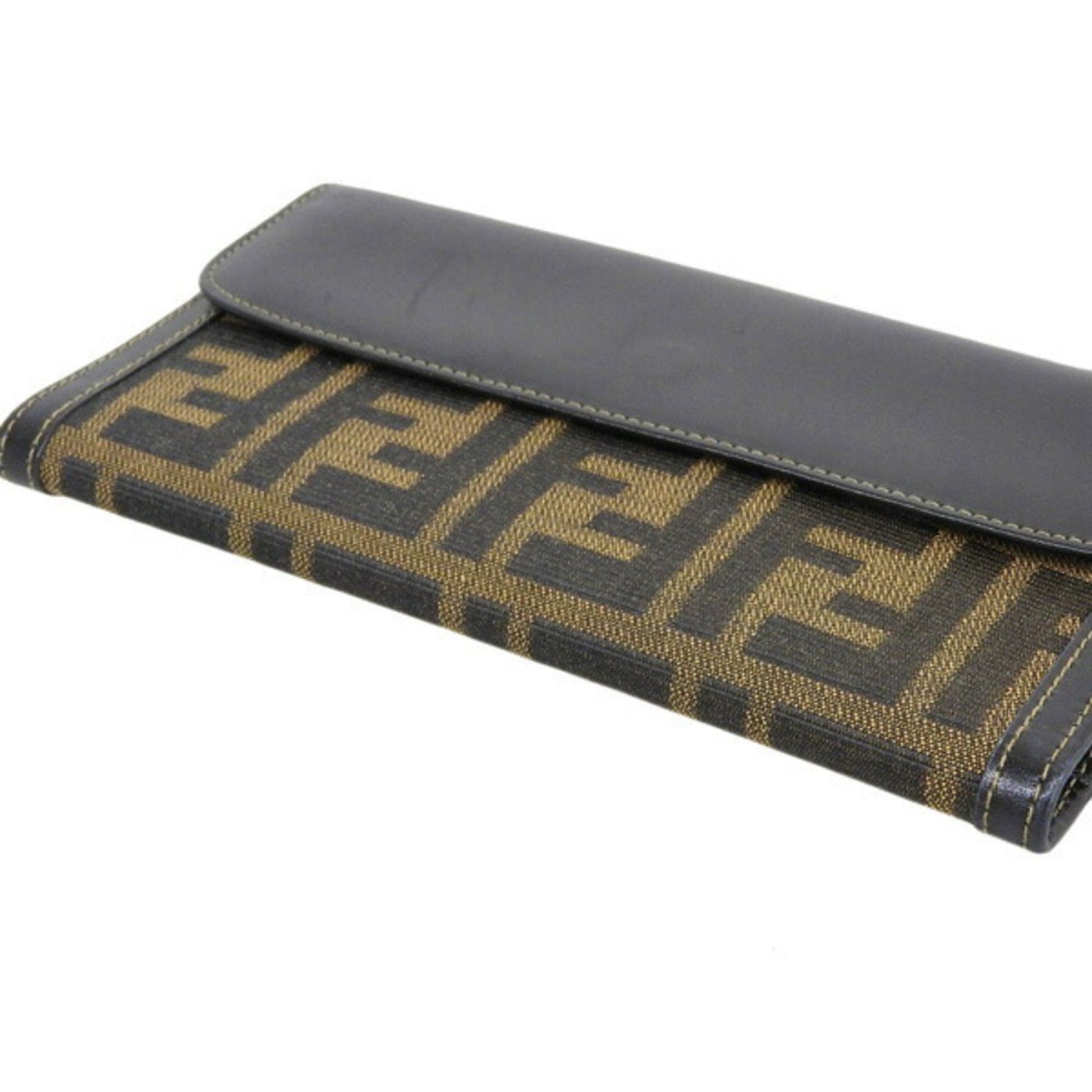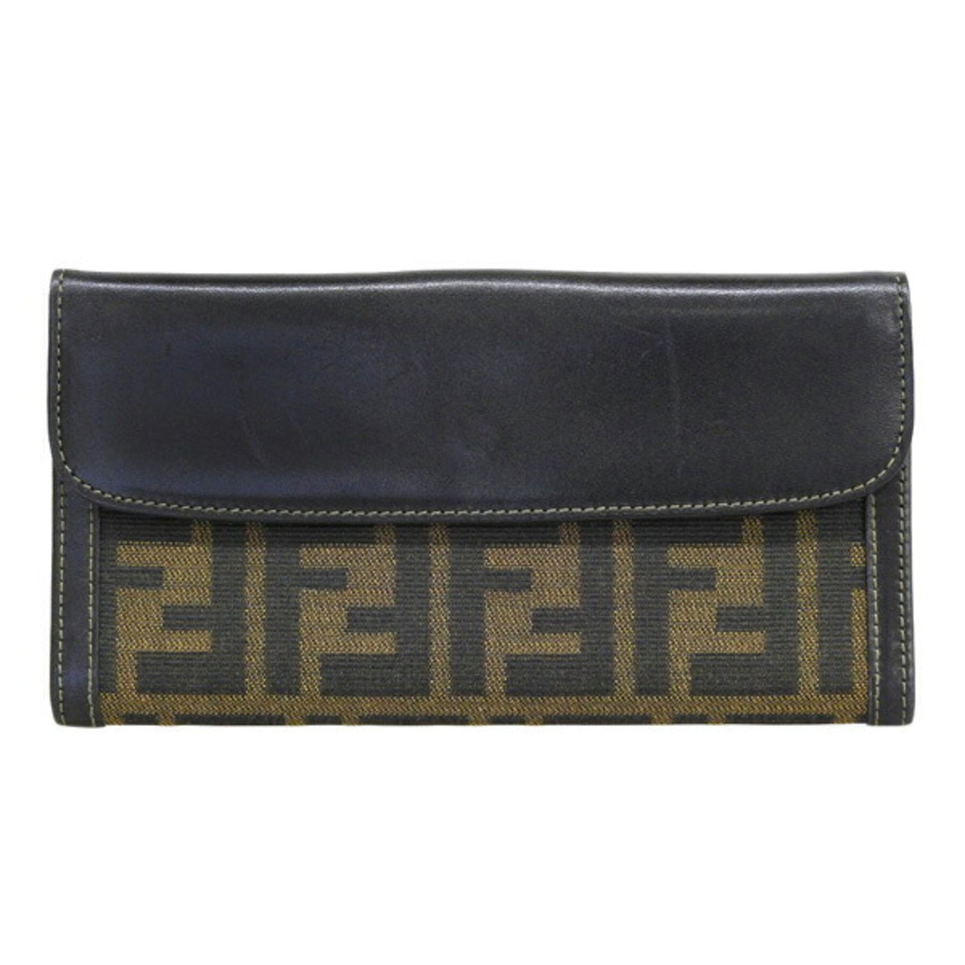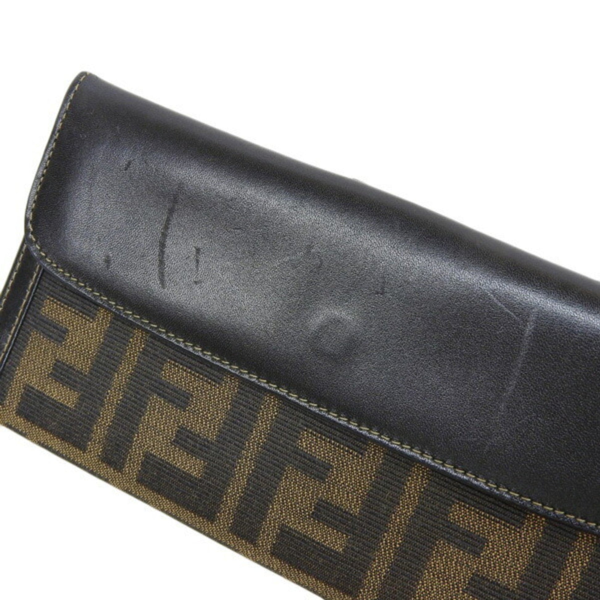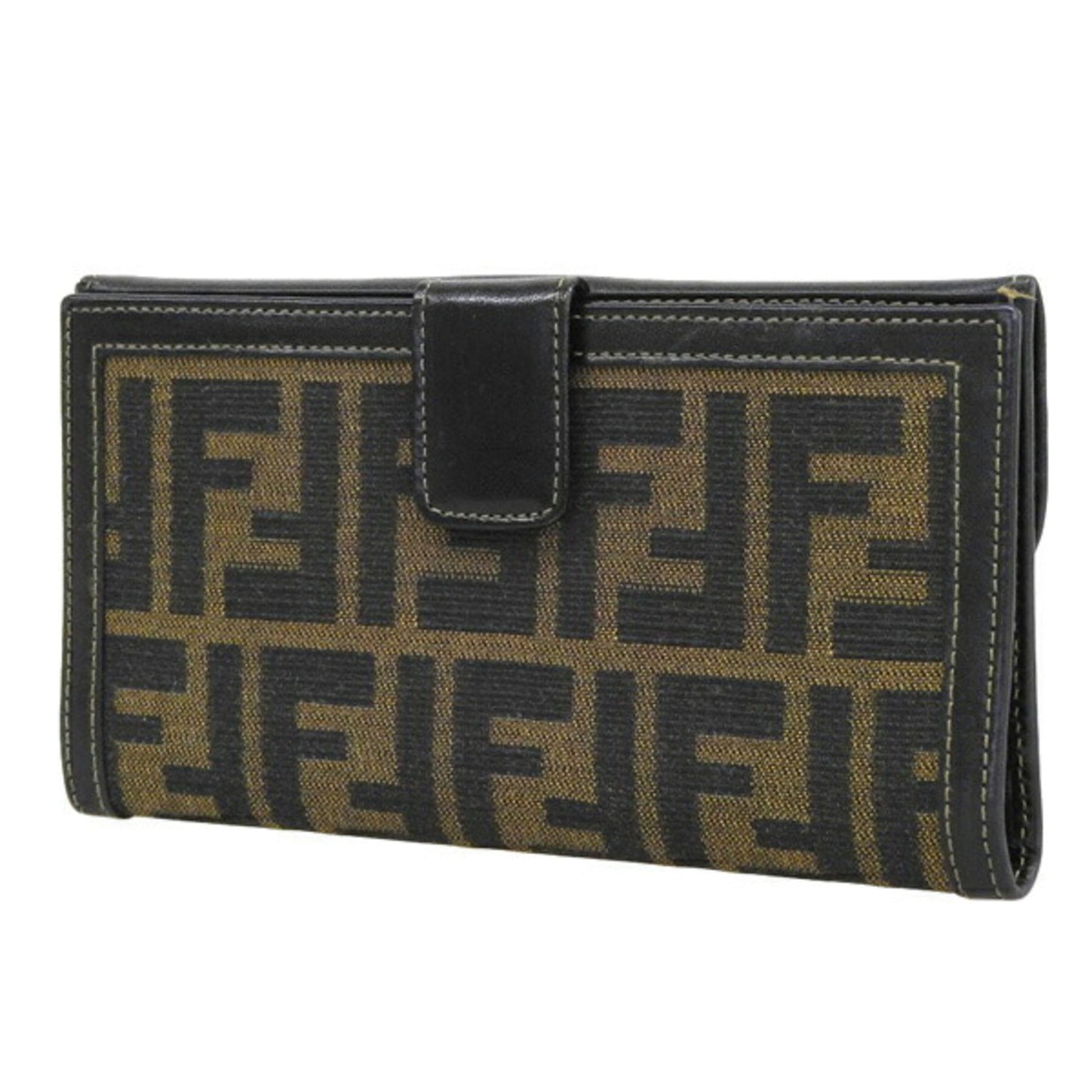 FENDI Canvas Leather Zucca Pattern Bifold Long Wallet Brown Ladies