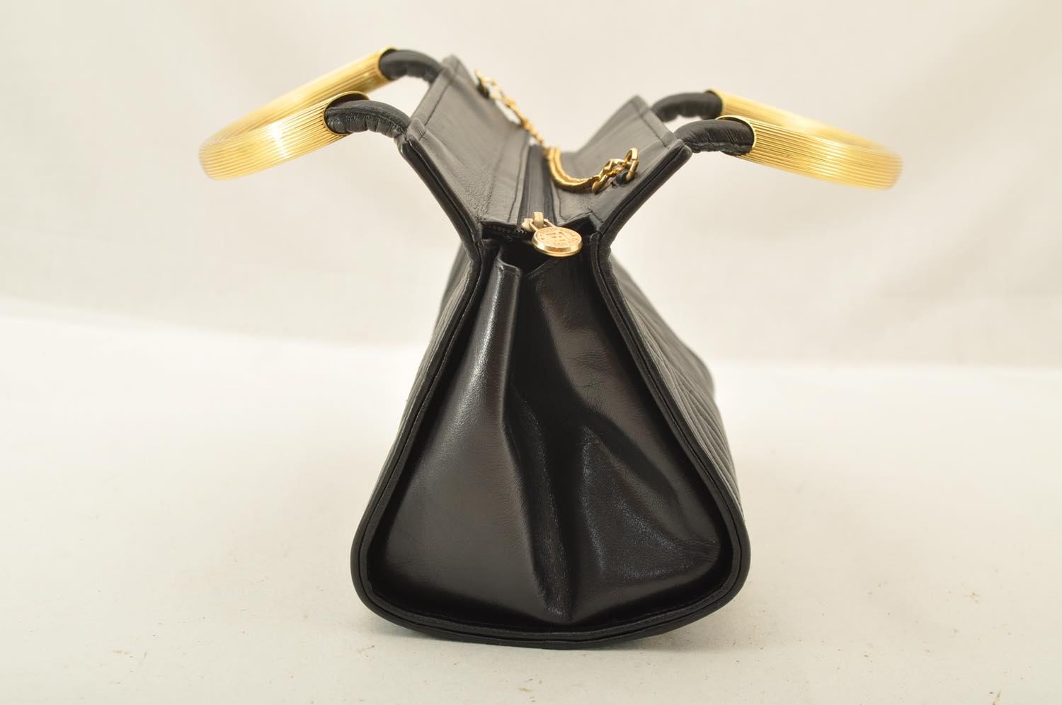 FENDI Chain Hand Bag Leather 2way Black am2376s