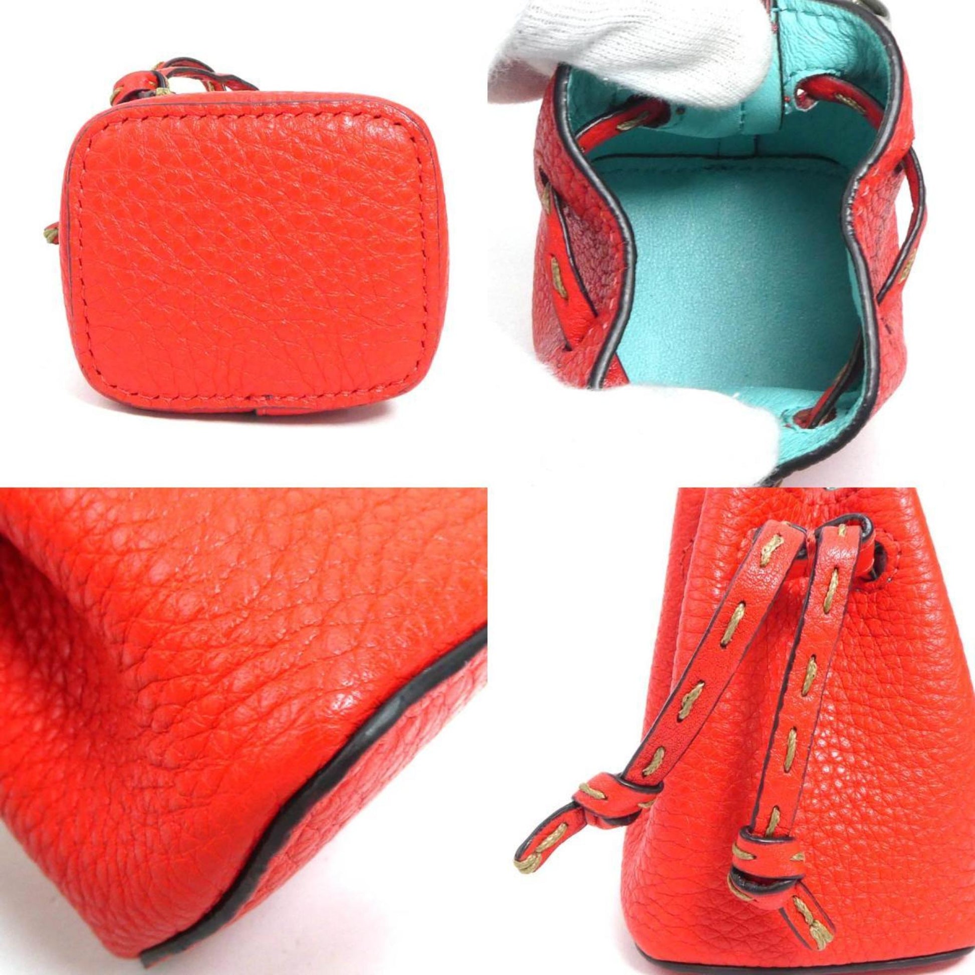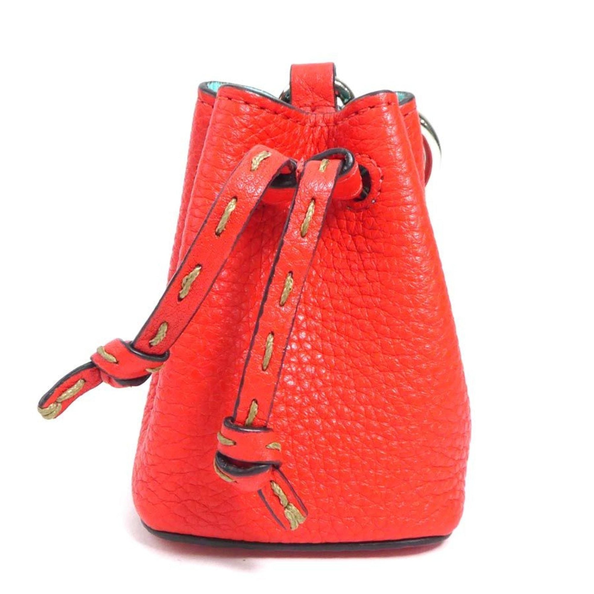 FENDI Charm Key Ring Leather/Metal Orange Red/Silver Ladies