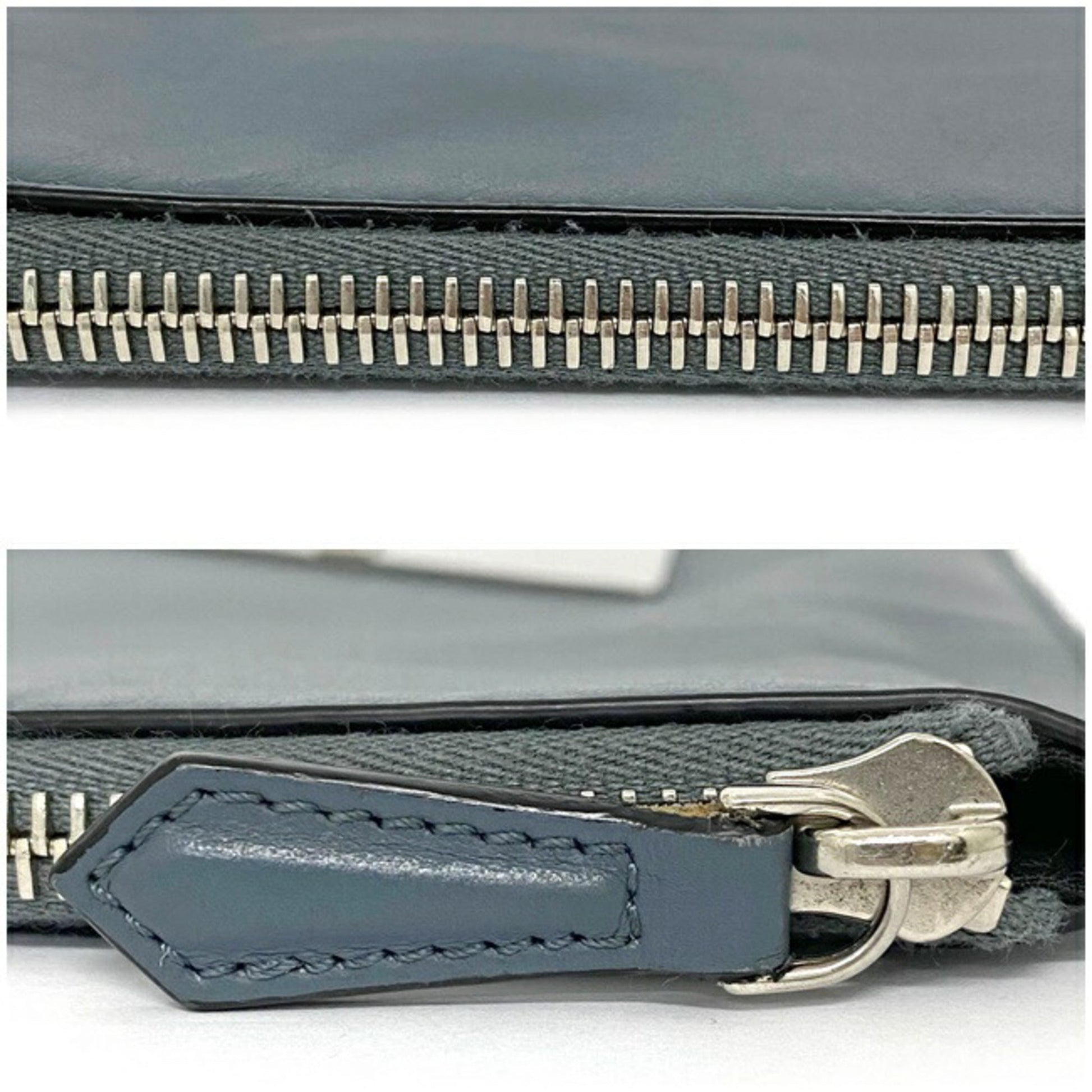 Fendi Clutch Bag Gray Silver Mon 7N0078 Plate Pouch Second Leather FENDI Women's Men's Dual
