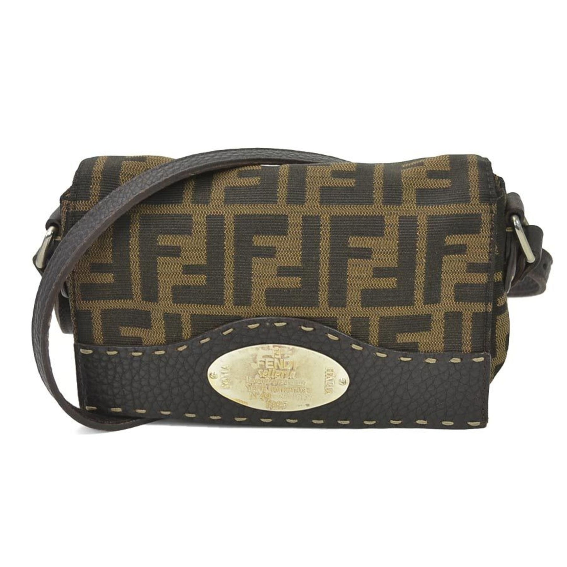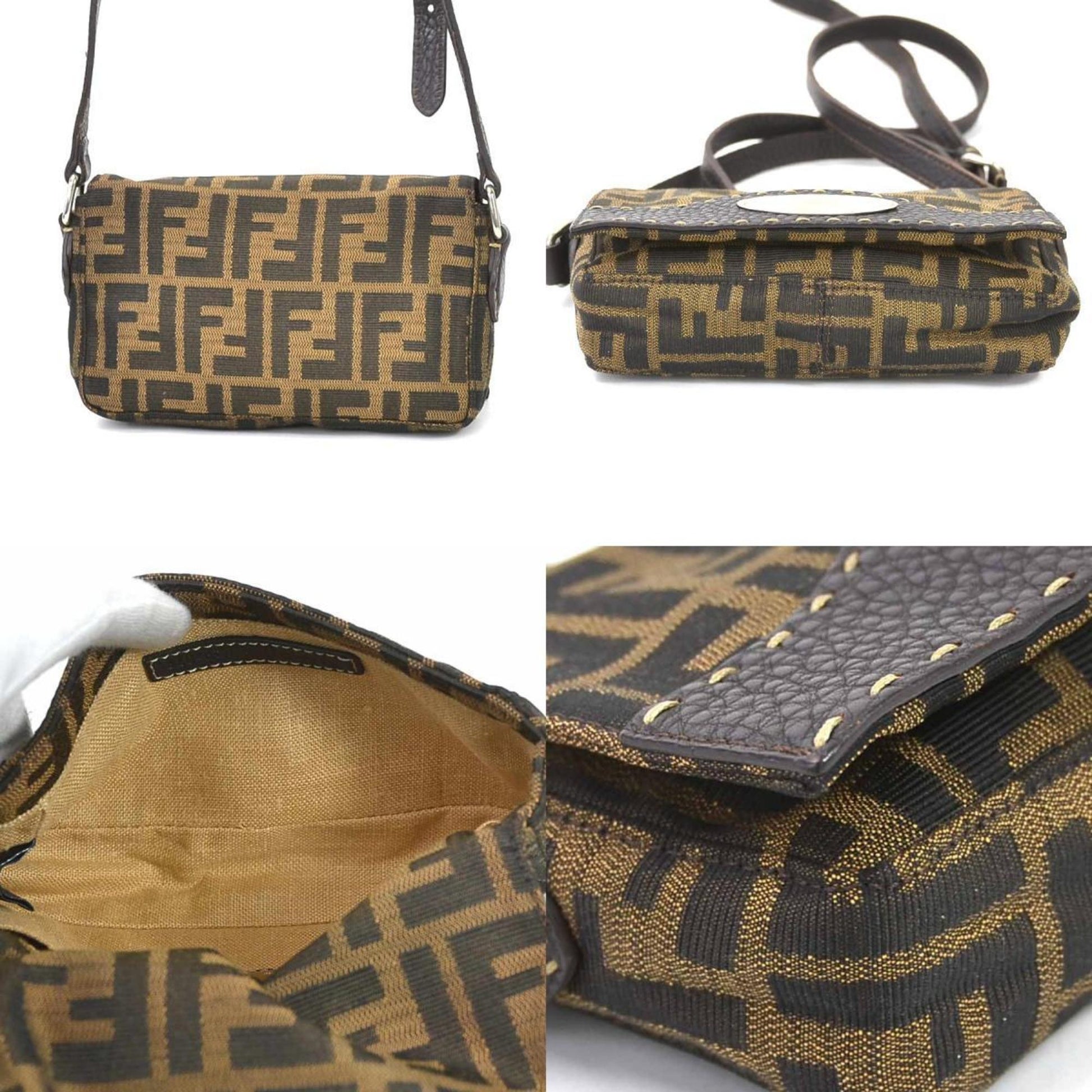 Fendi Crossbody Shoulder Bag Zucca Selleria Canvas/Leather Brown Silver Women's