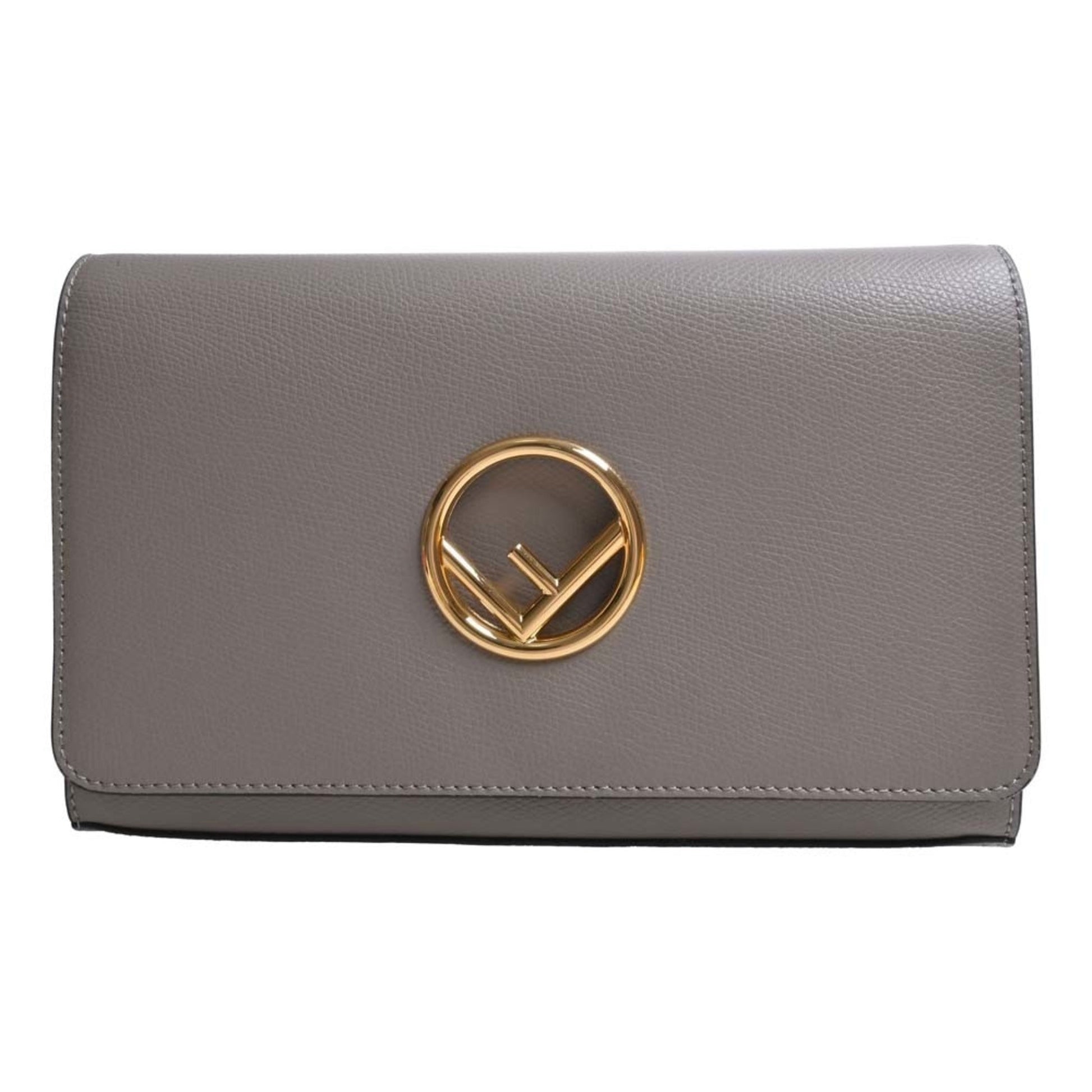 FENDI F's Leather Chain Shoulder Long Wallet 8BS004 Greige Ladies