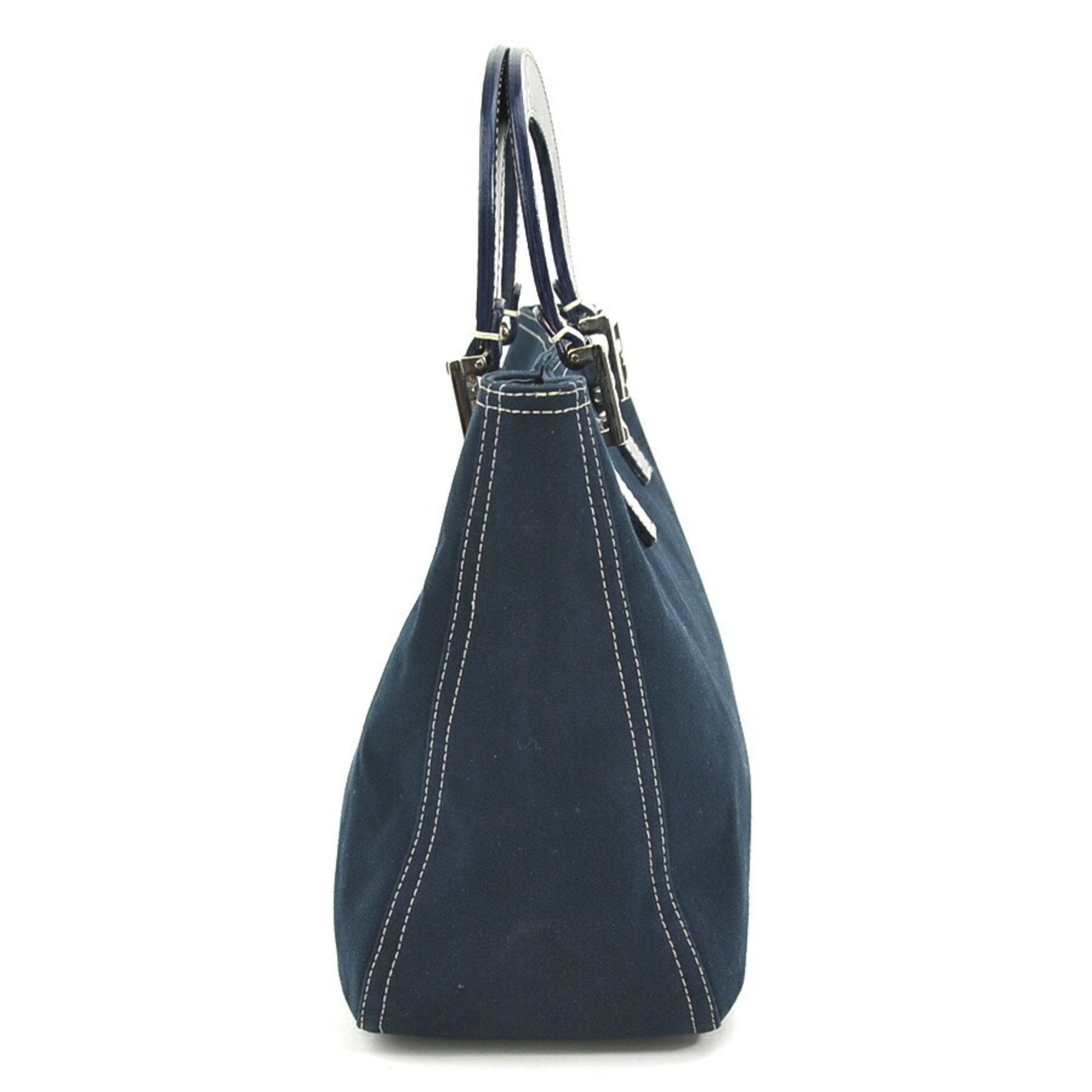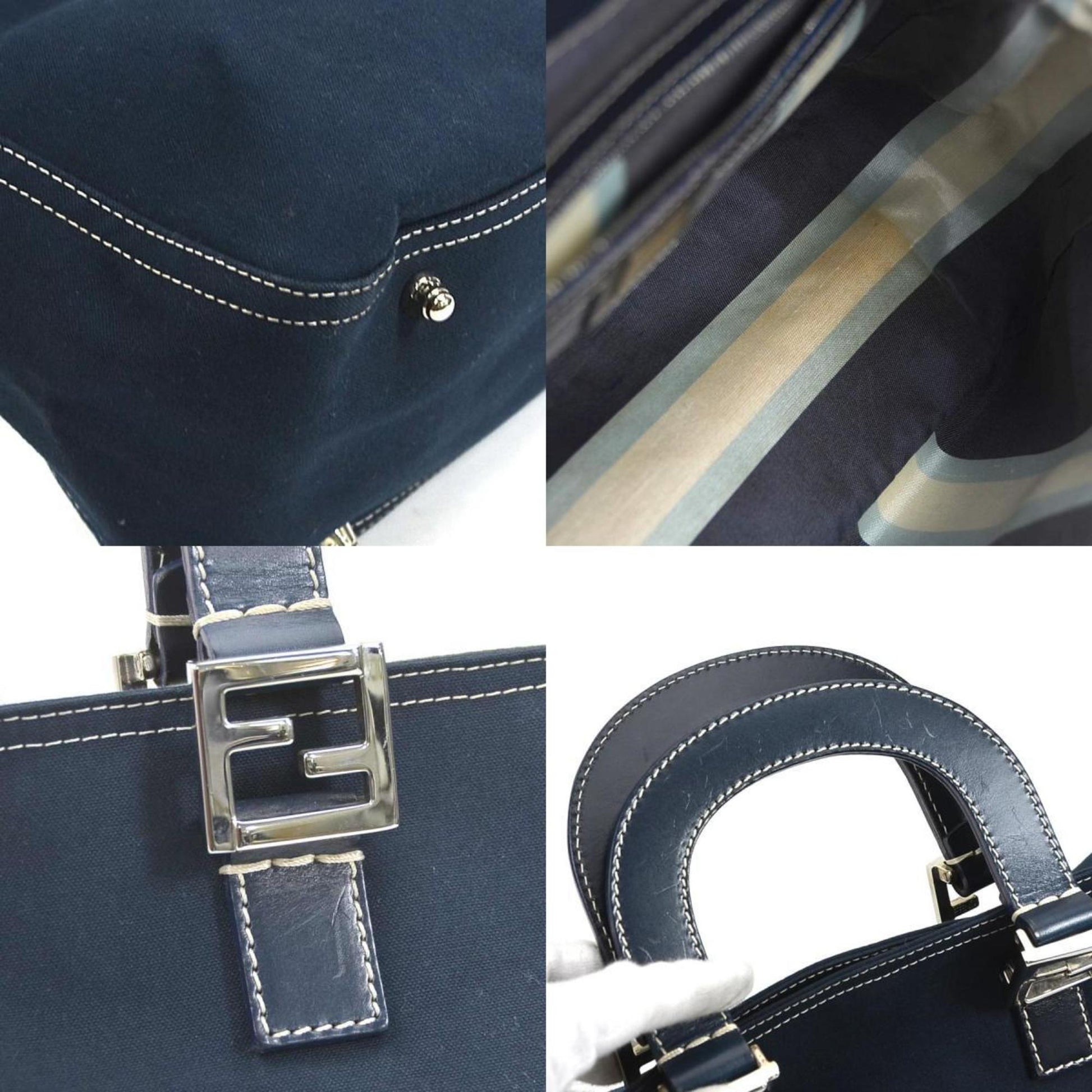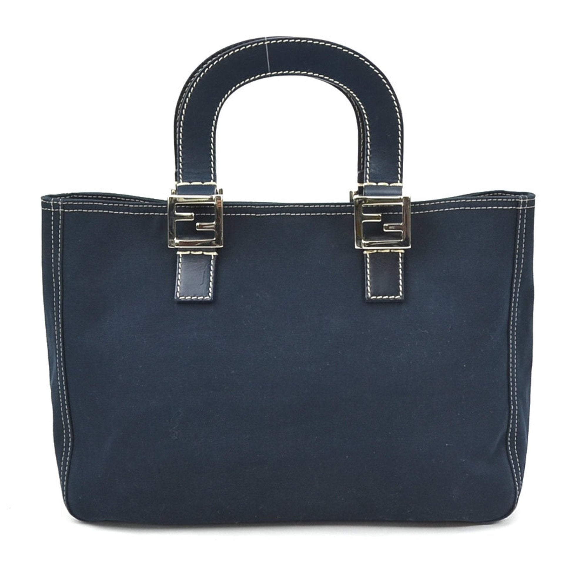 FENDI Handbag Canvas/Leather Navy Silver Ladies