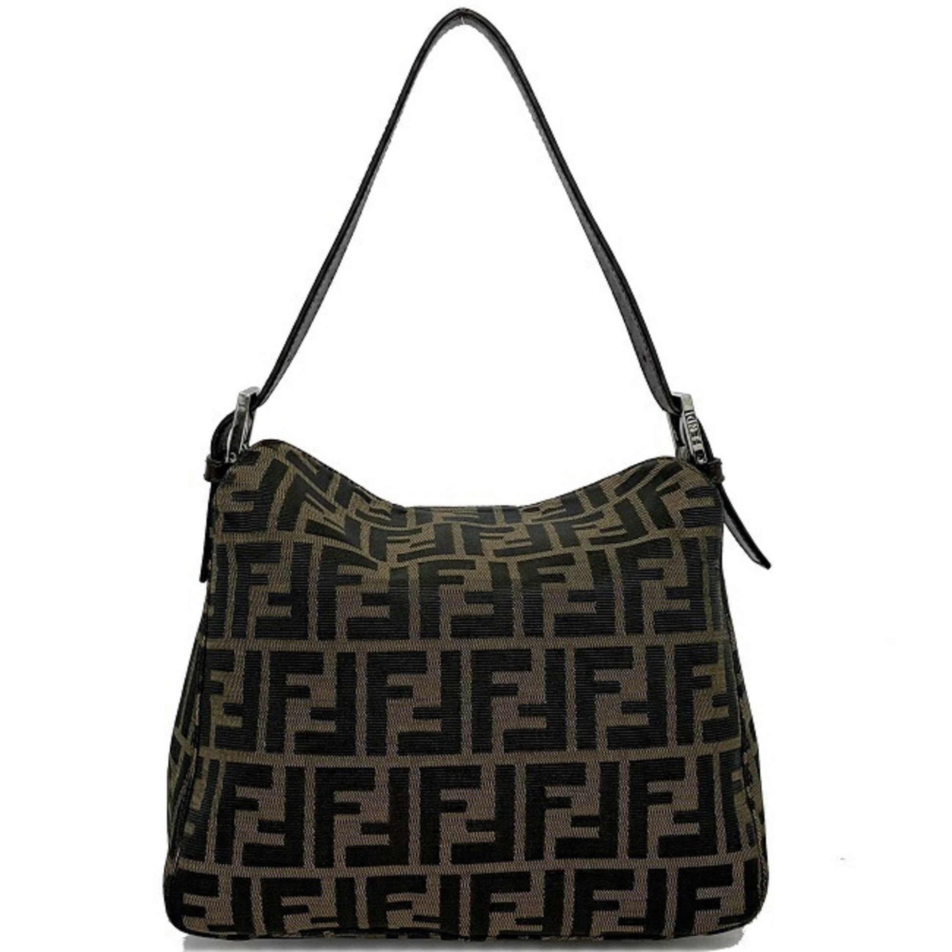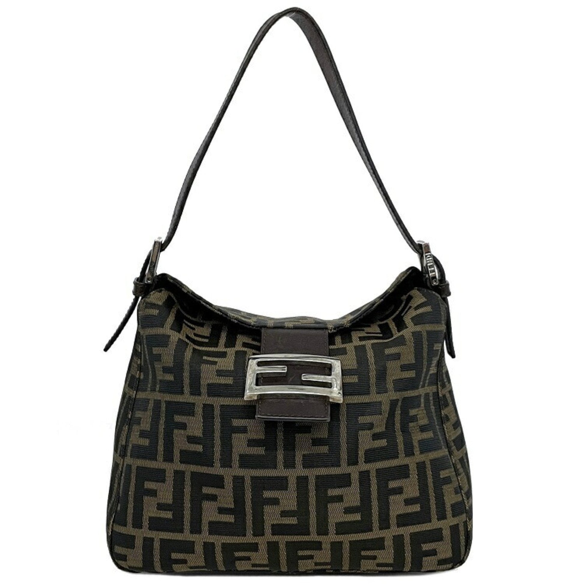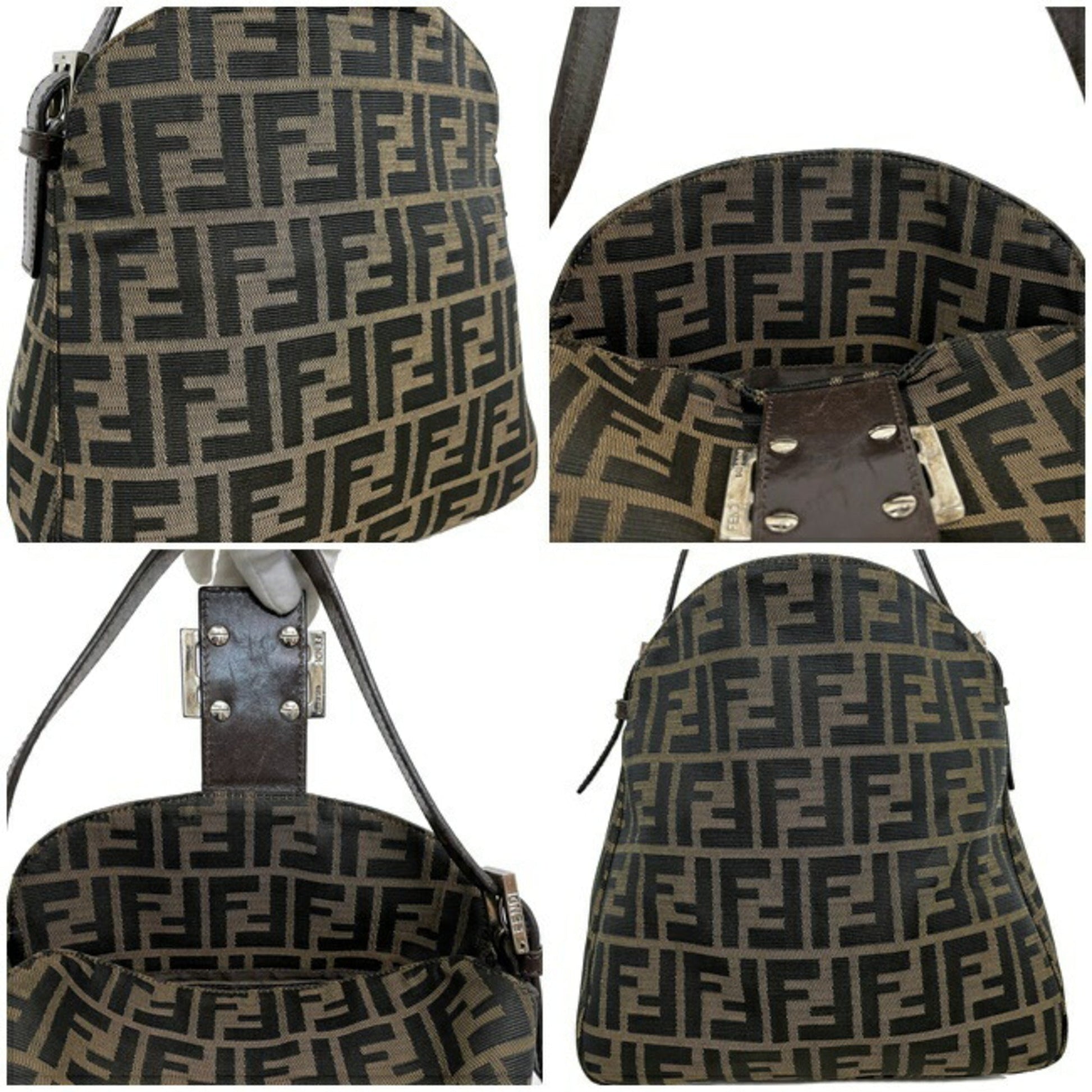 Fendi Handbag Mamma Bag Brown Khaki Silver Zucca Canvas Leather FENDI Bucket Flap FF Mini Ladies
