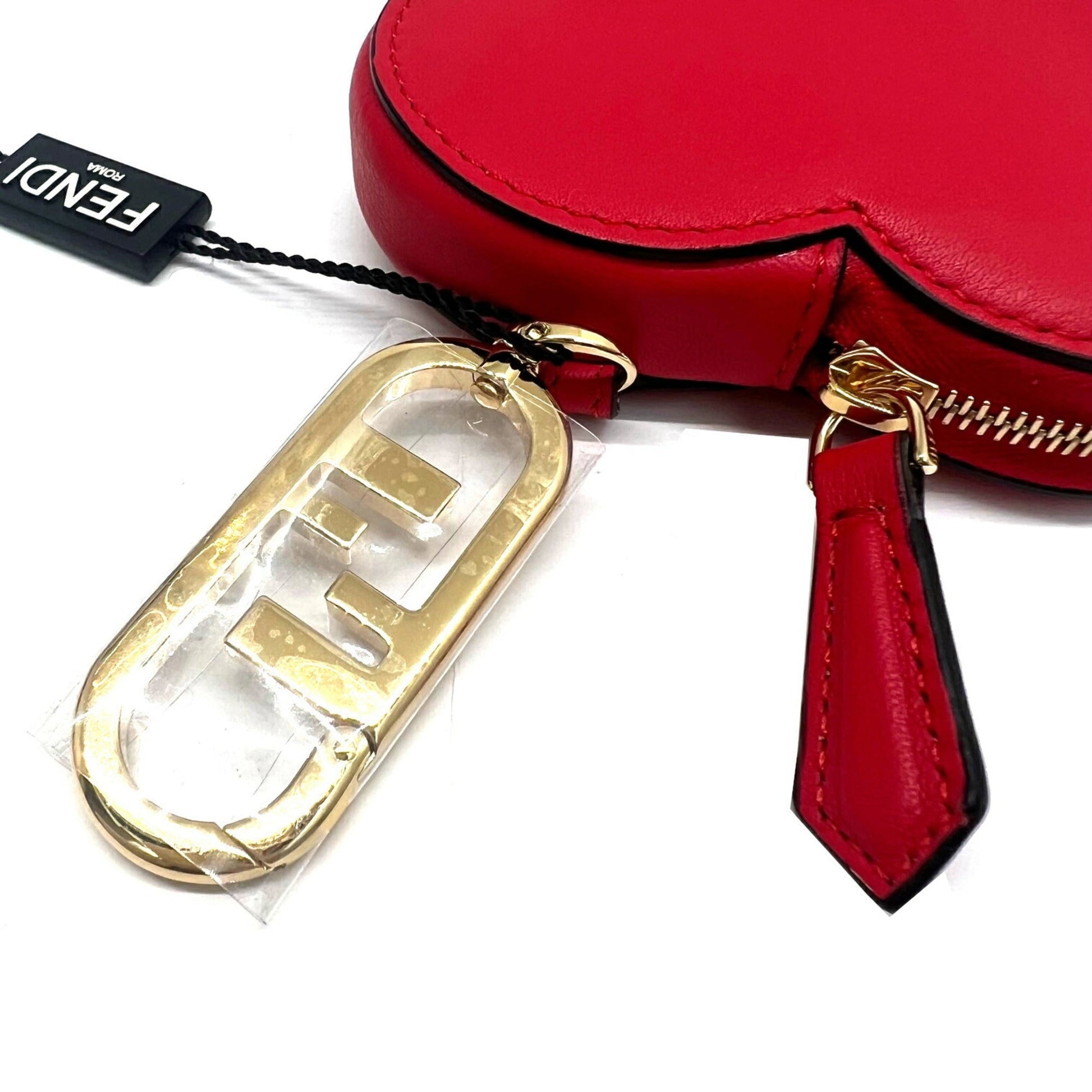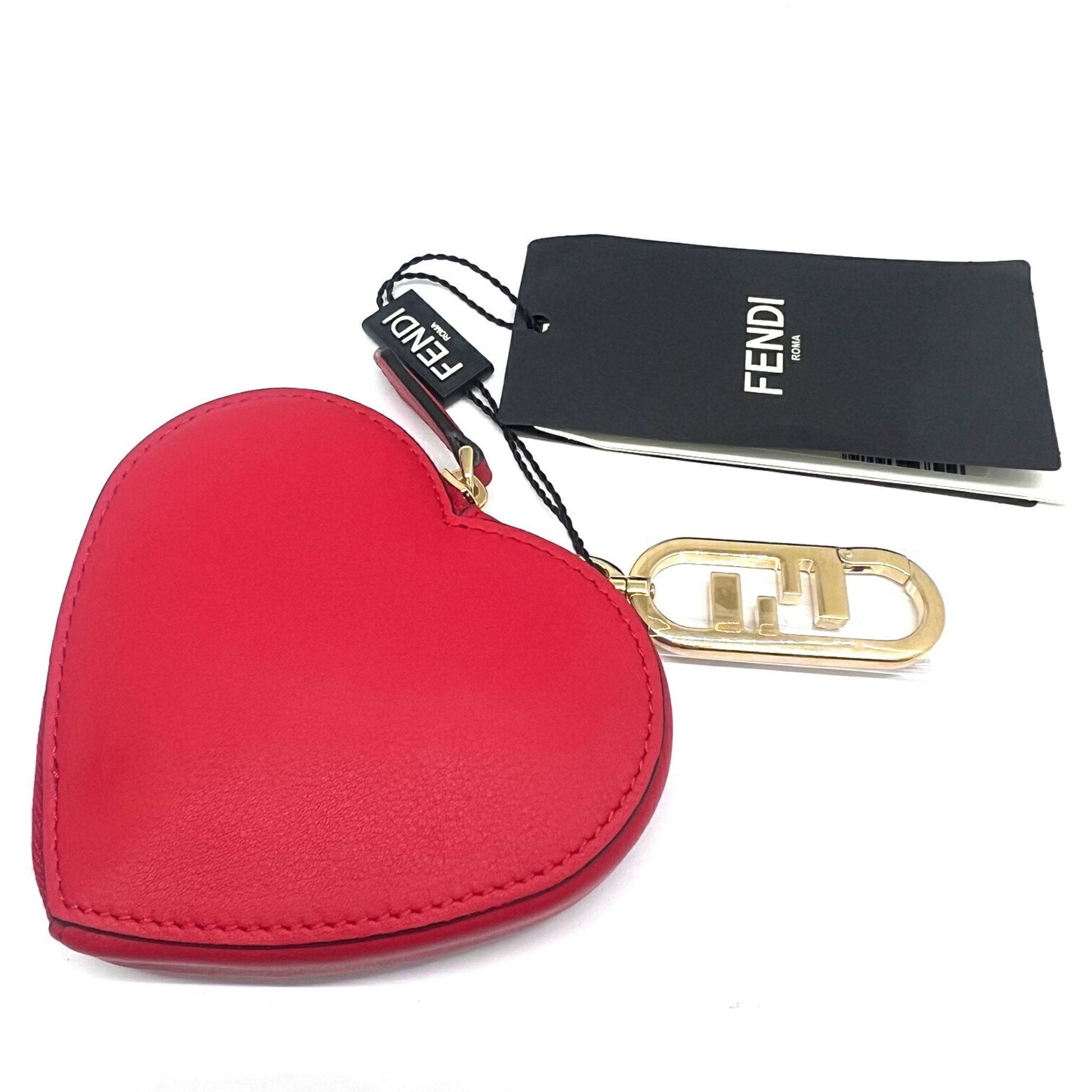 Fendi heart-shaped coin case wallet leather ladies red gold metal fittings 8M0467 new FF logo gift